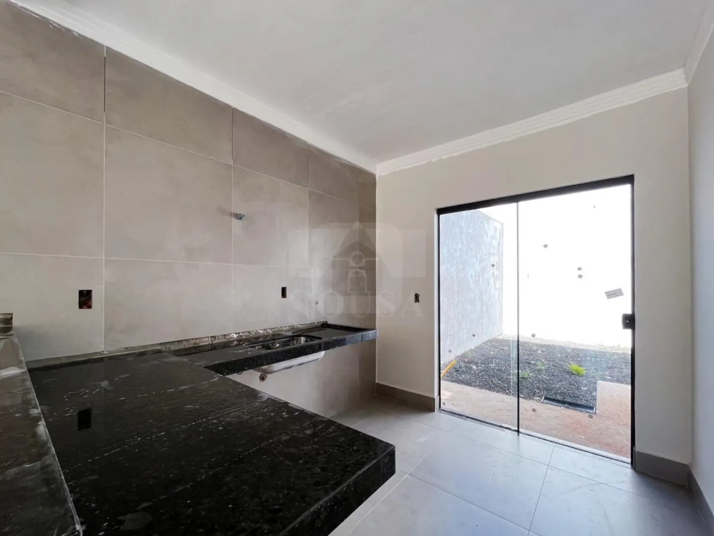 Cozinha americana com pia e bancada em granito;