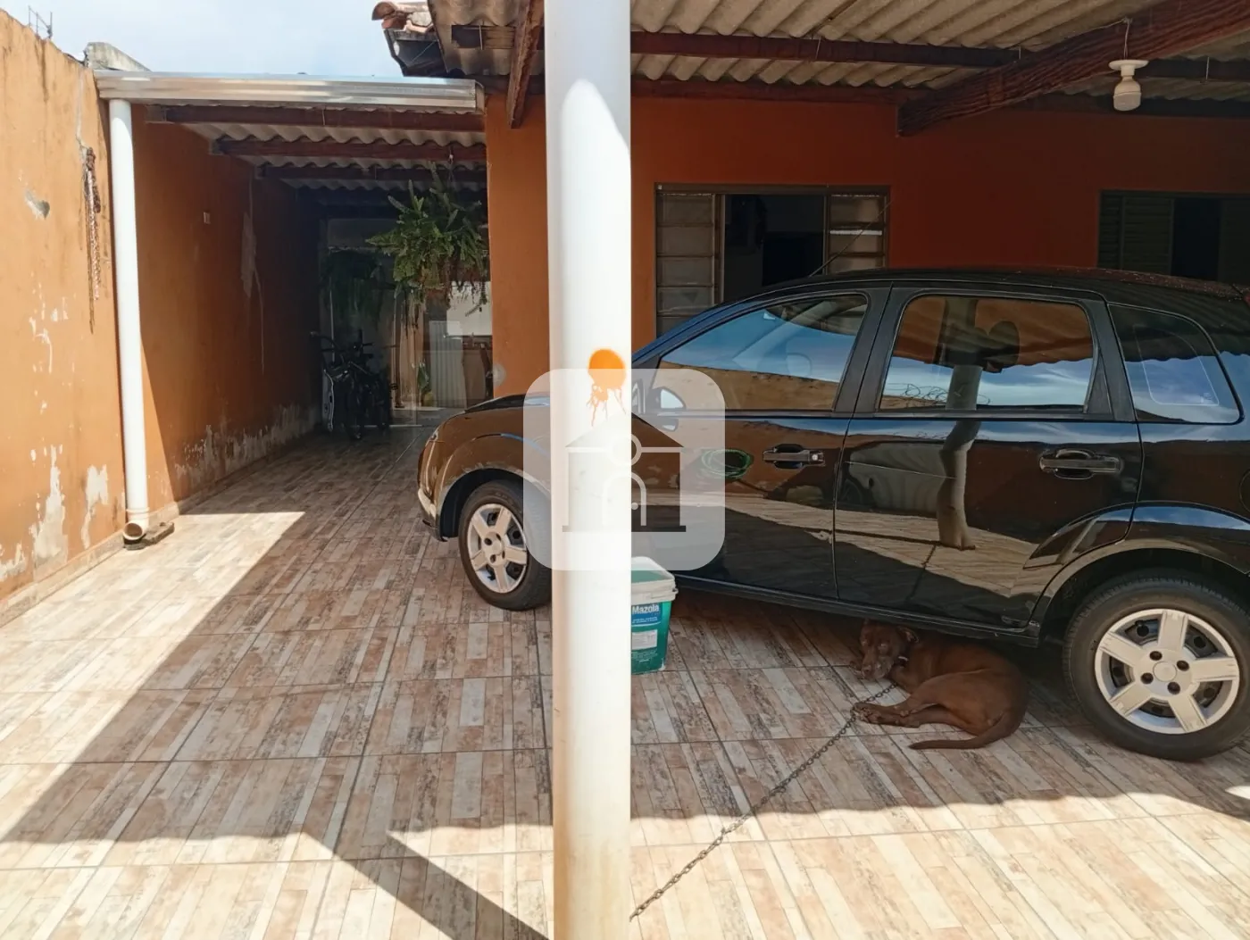 Garagem coberta.