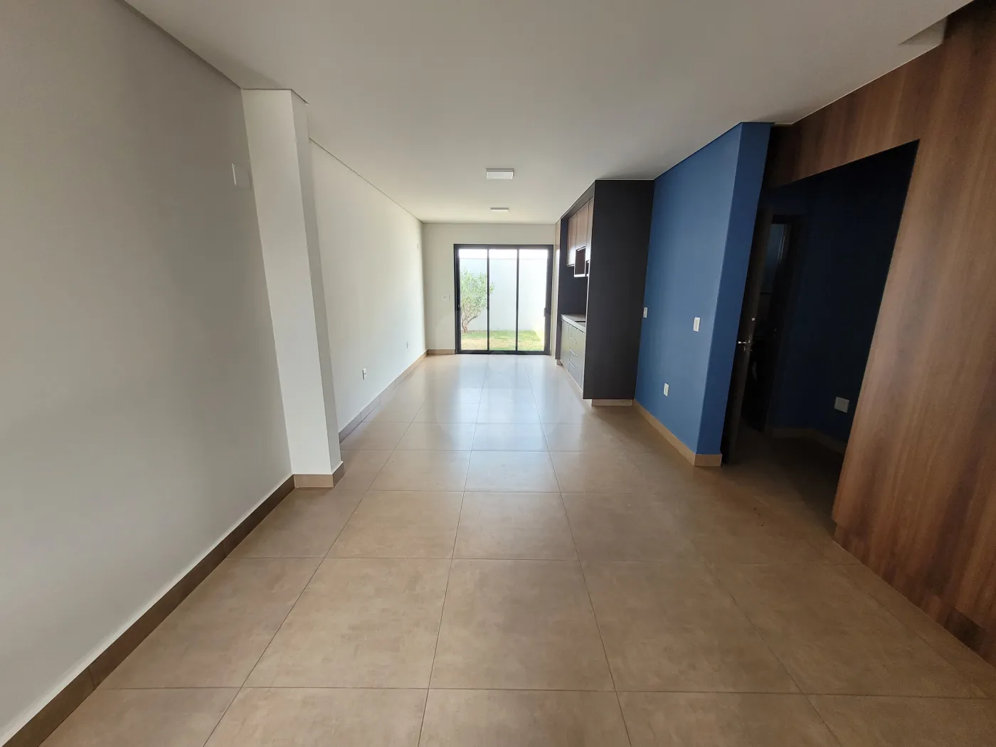 Sala em dois ambientes com painel de Tv,