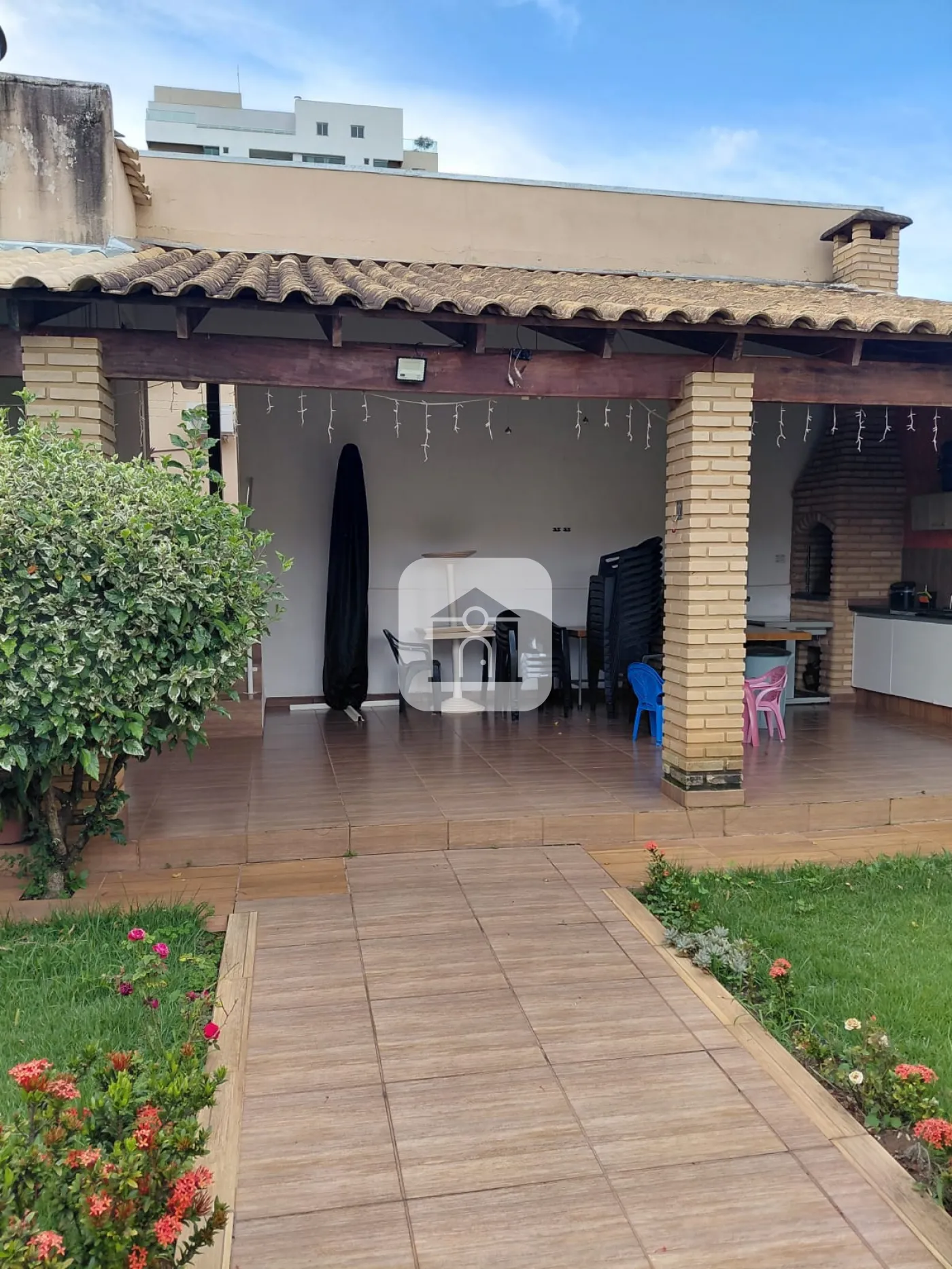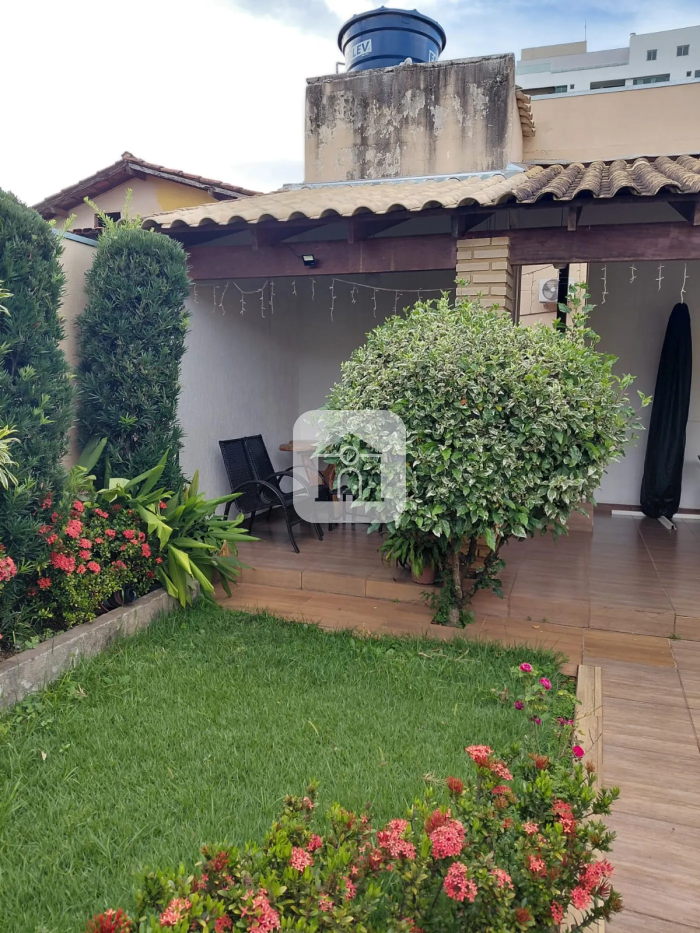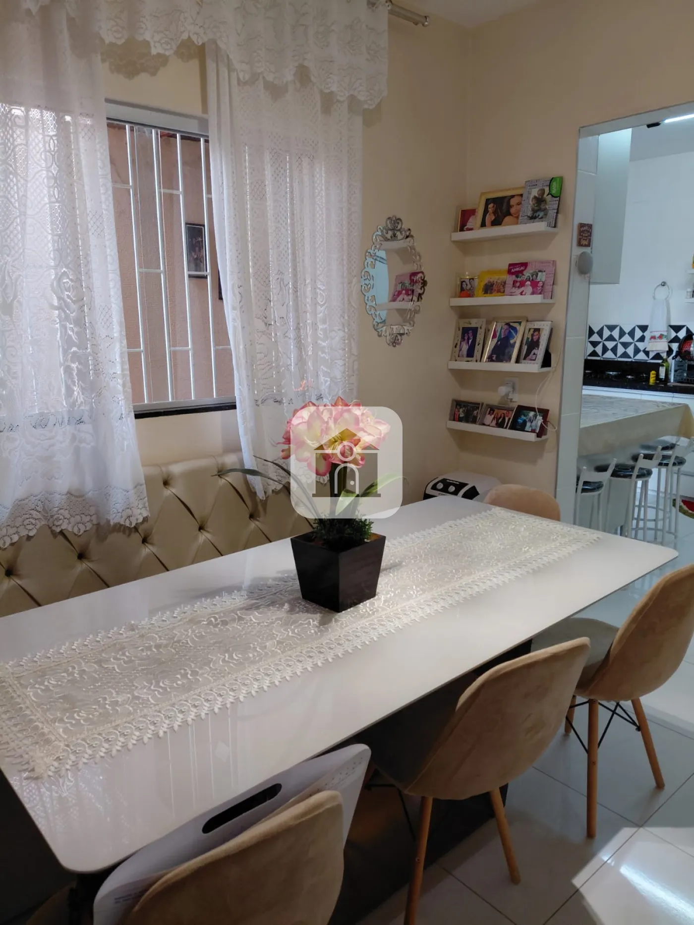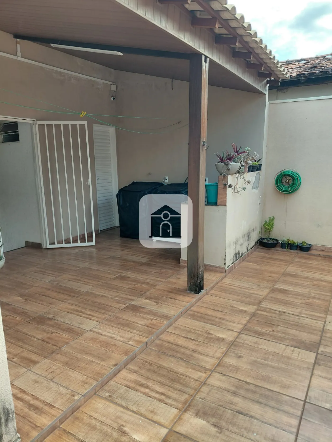Casa com interfone, varanda com garagens para 02 carros, sala com painel, copa, cozinha planejada, com bancada em granito, 03 quartos todos com armários, banho social, 01 quarto sendo transformado em closet, área de serviço com varanda, quarto, e banheiro, área gourmet com churrasqueira e quintal gramado.