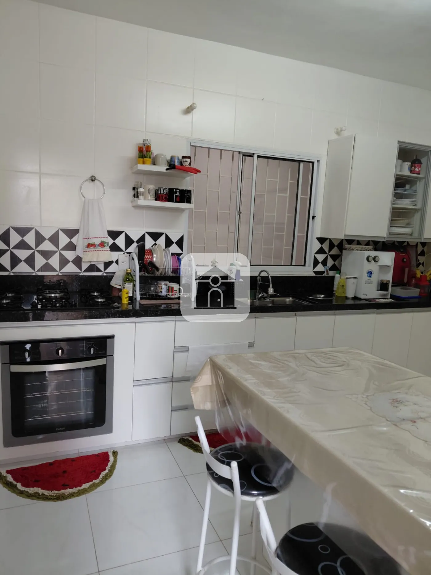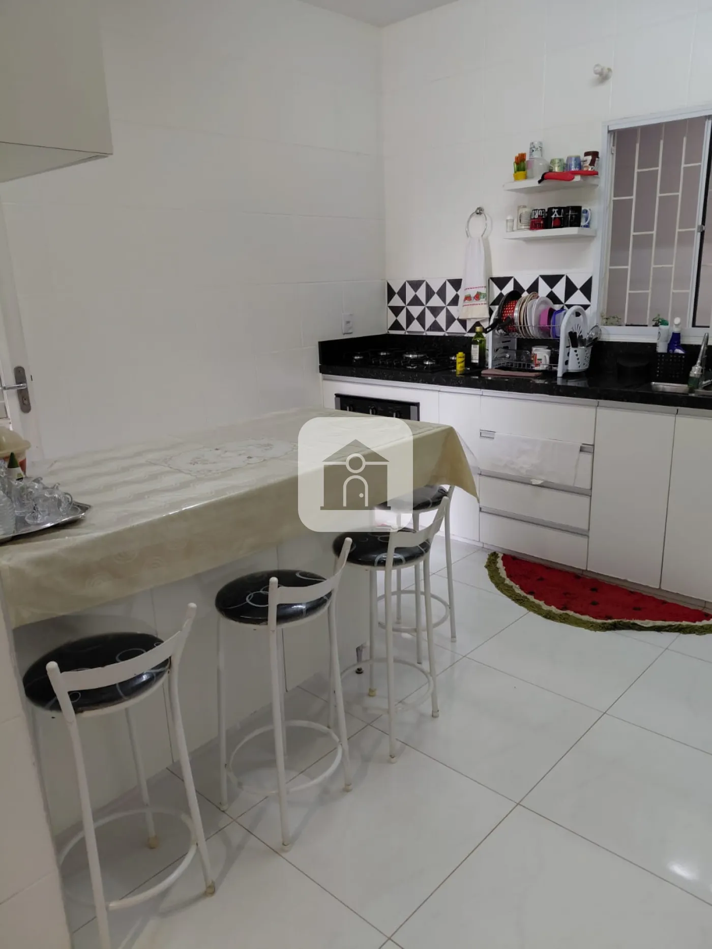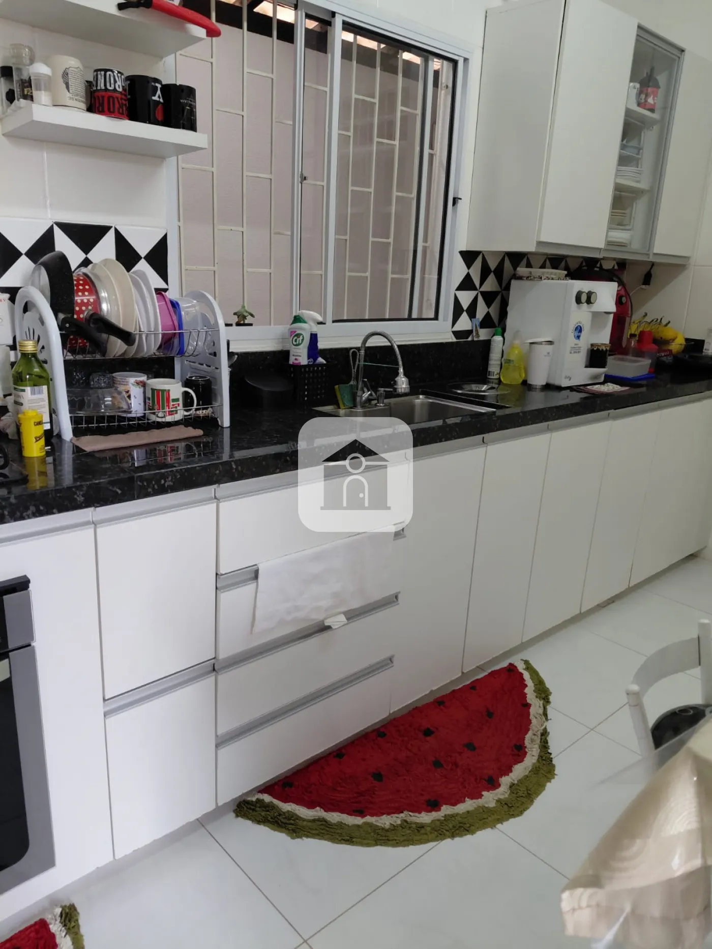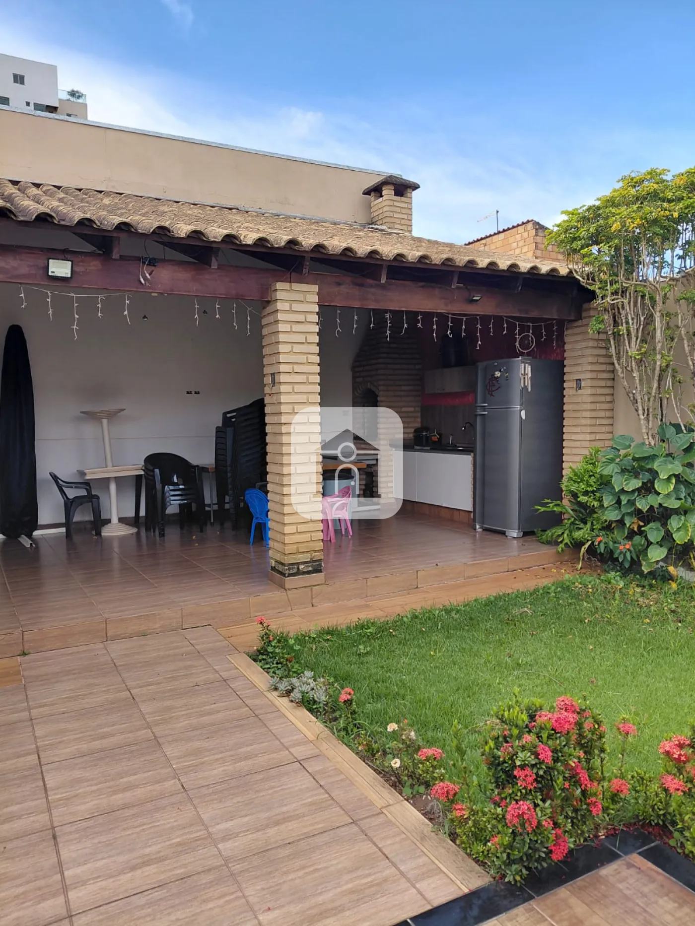 Casa com interfone, varanda com garagens para 02 carros, sala com painel, copa, cozinha planejada, com bancada em granito, 03 quartos todos com armários, banho social, 01 quarto sendo transformado em closet, área de serviço com varanda, quarto, e banheiro, área gourmet com churrasqueira e quintal gramado.