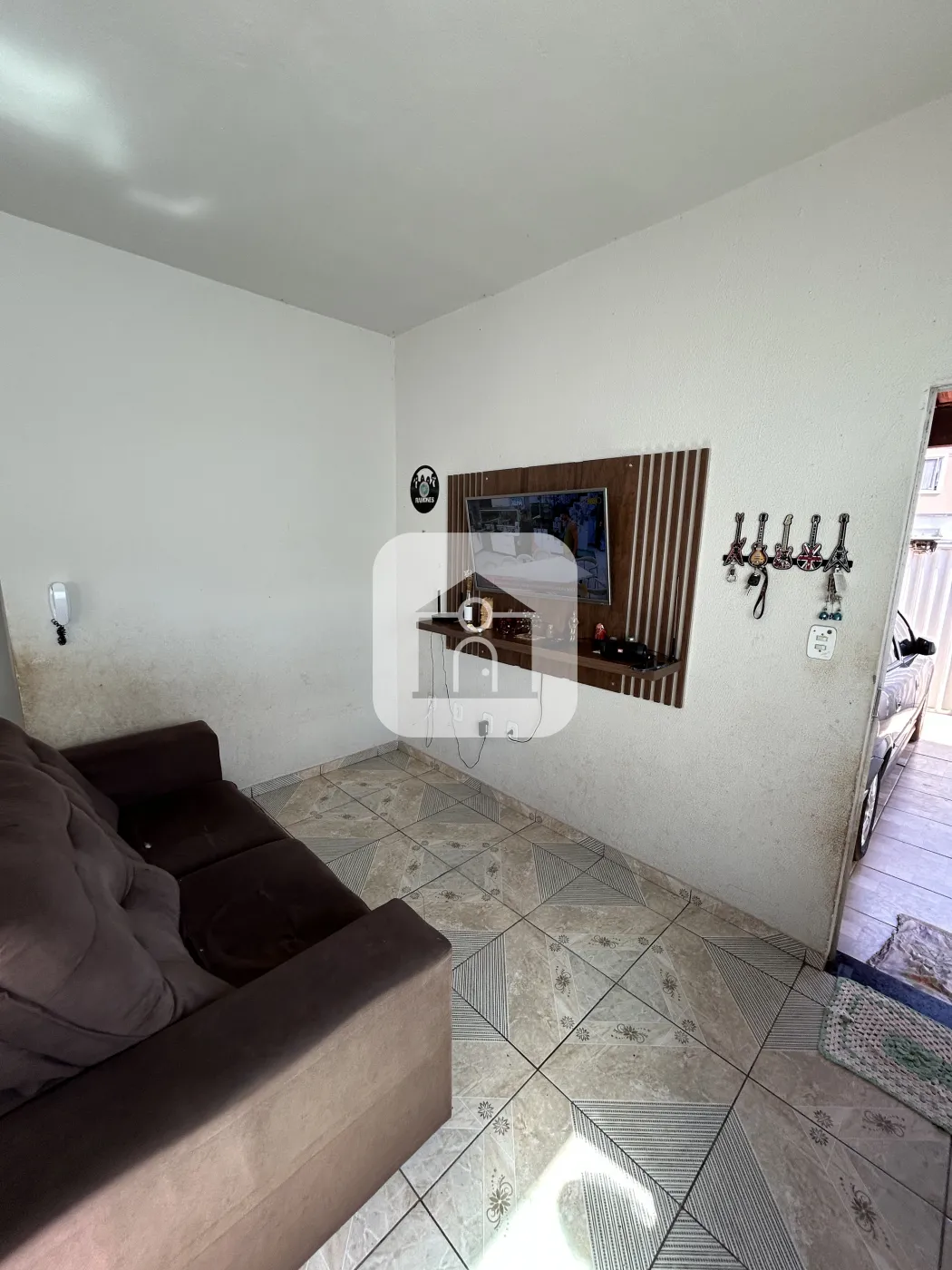 Casa 01: com interfone, 02 garagens, sala, 03 quartos (01 suíte), banheiro social, cozinha, lavanderia, quintal;