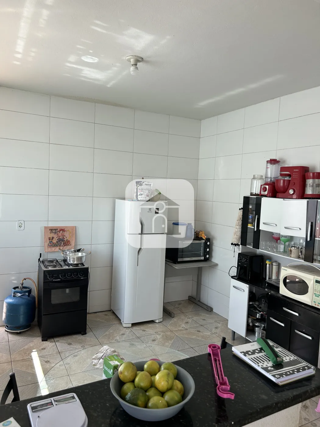 Piso cerâmica, toda laje, bancadas granito;