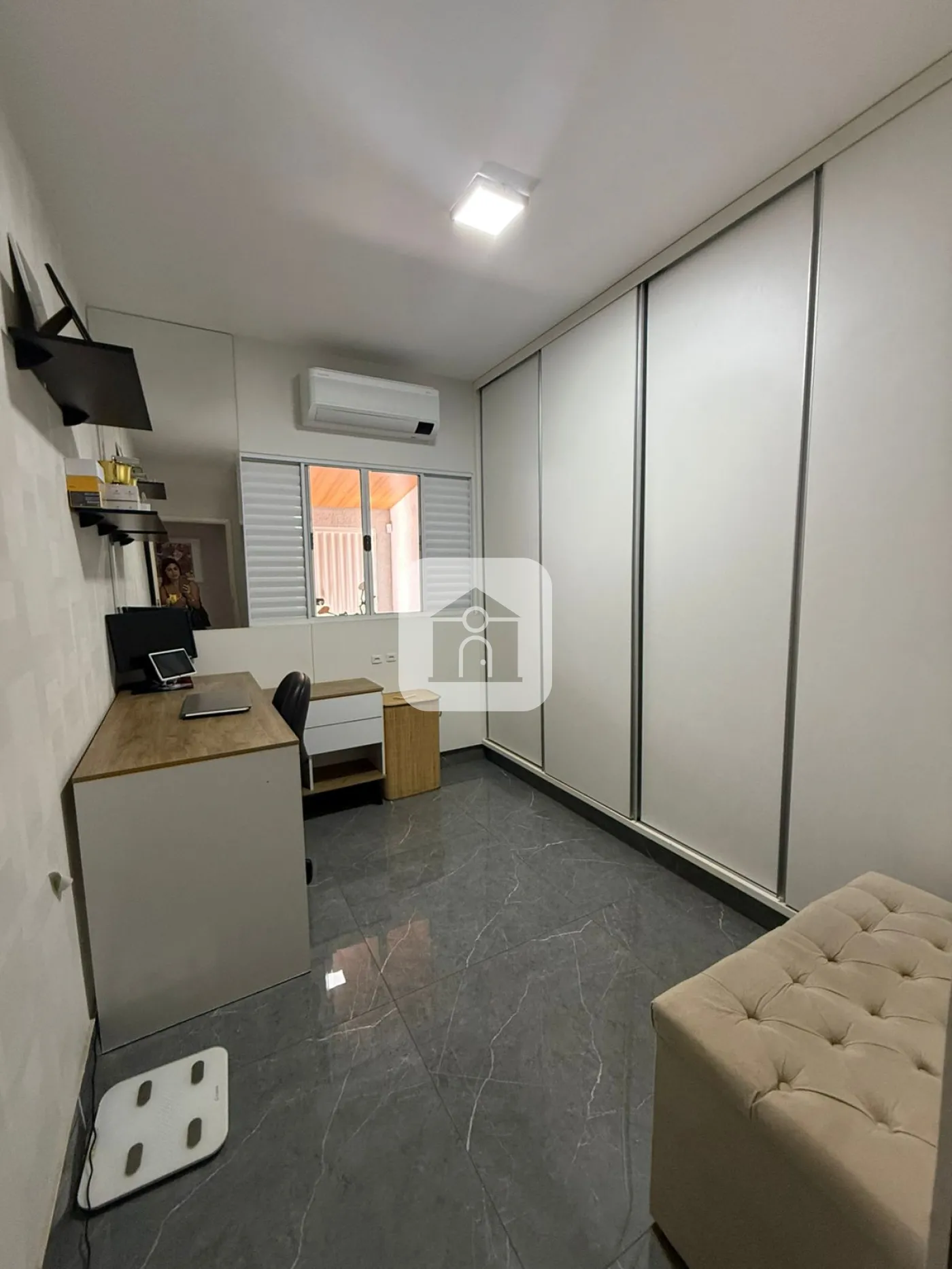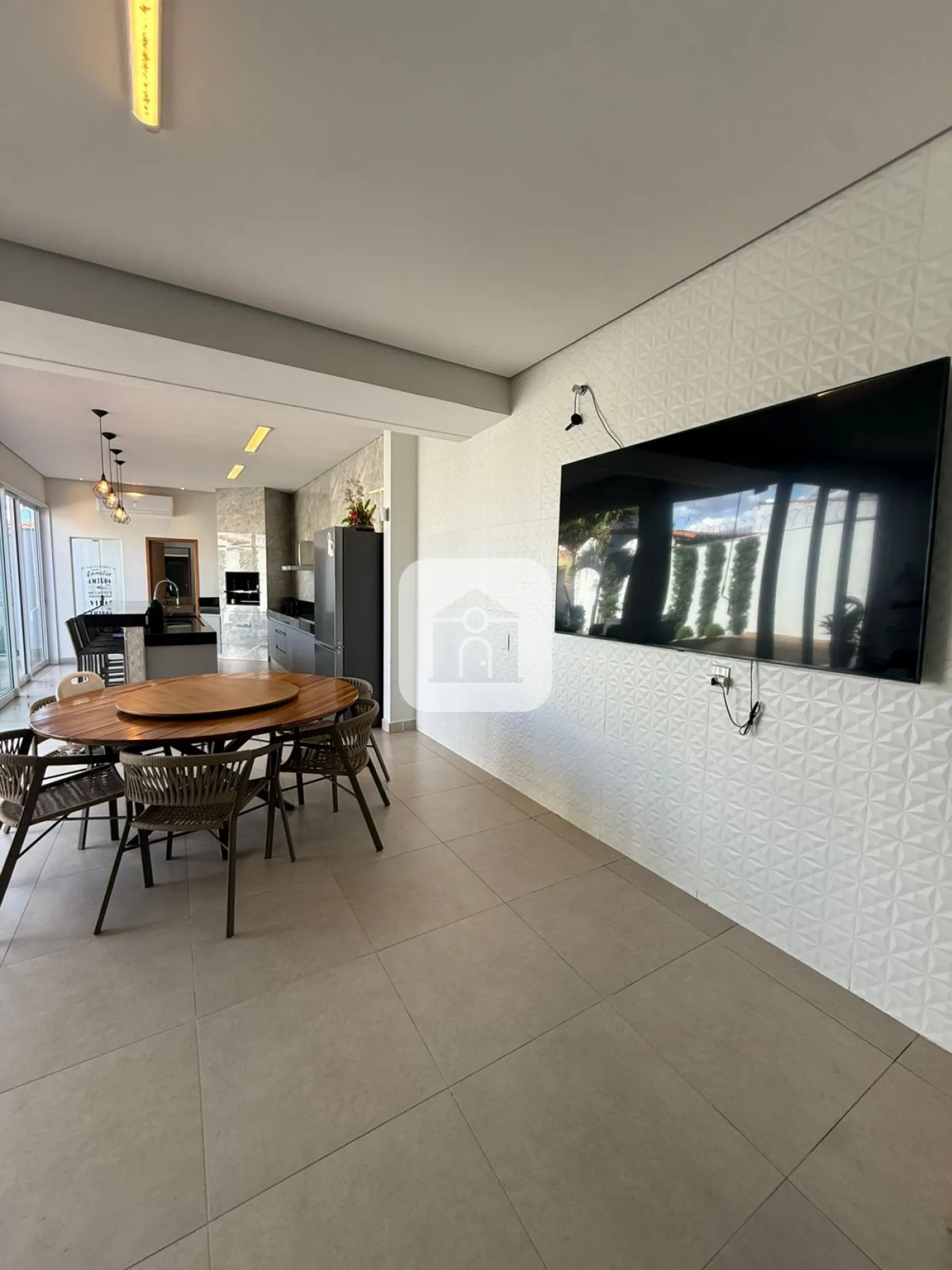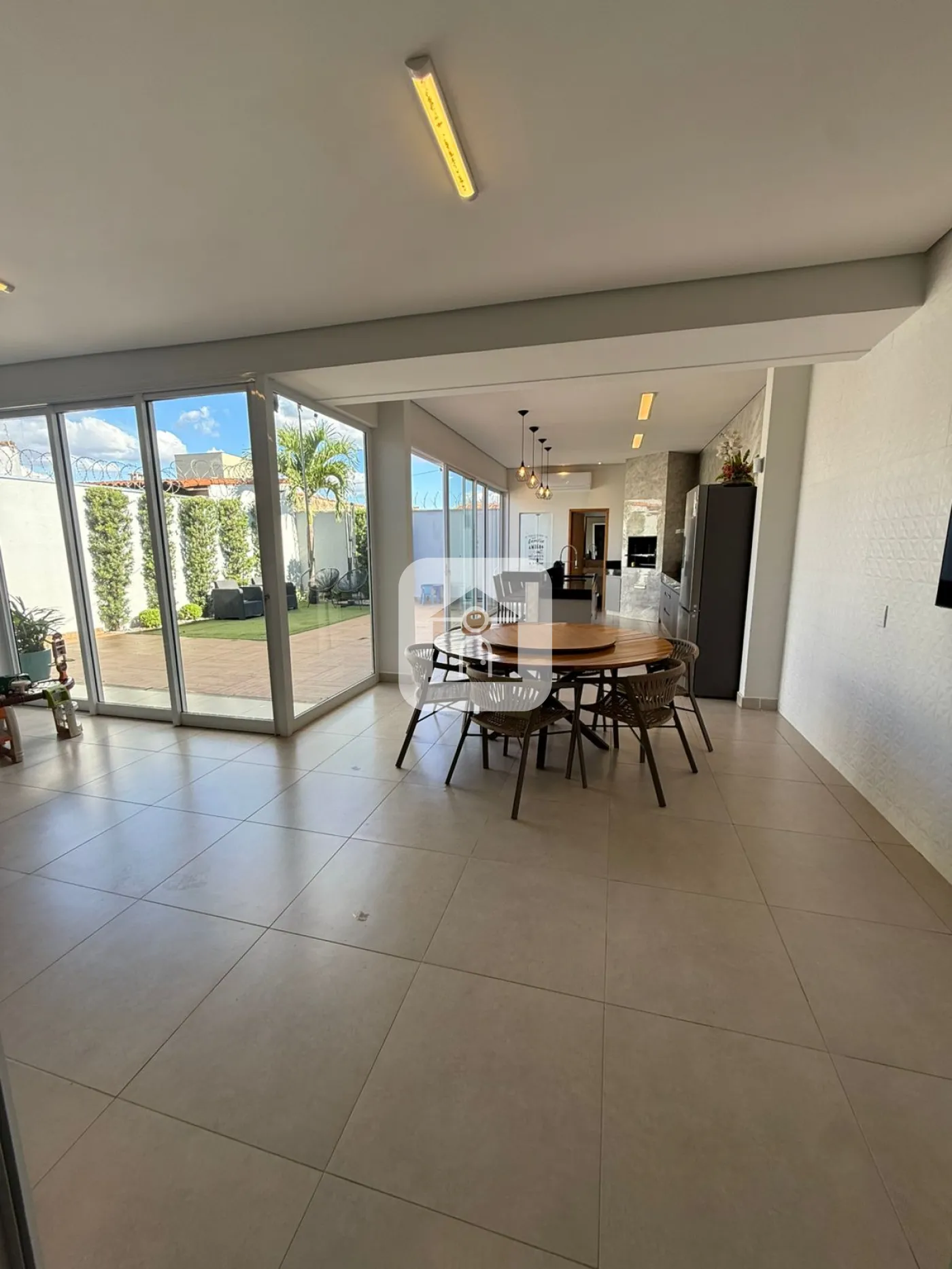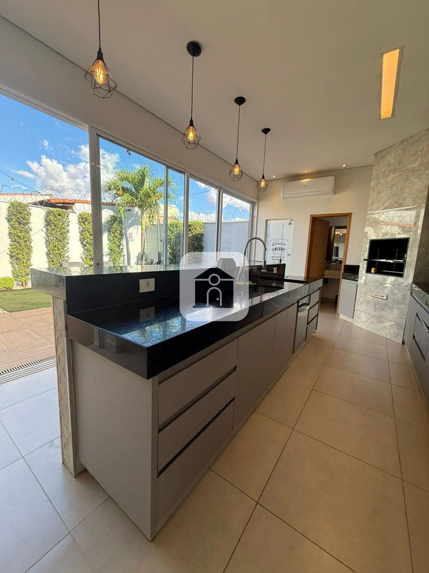3 quartos ,com suite armarios planejados ,ar condicionado, sala ampla com ar condicionado cozinha com armarios planejados ,área gourmet com churrasqueira bancada em granito e ar condicionado energia fotovoltaica e quintal garagem coberta para ate 3 carros