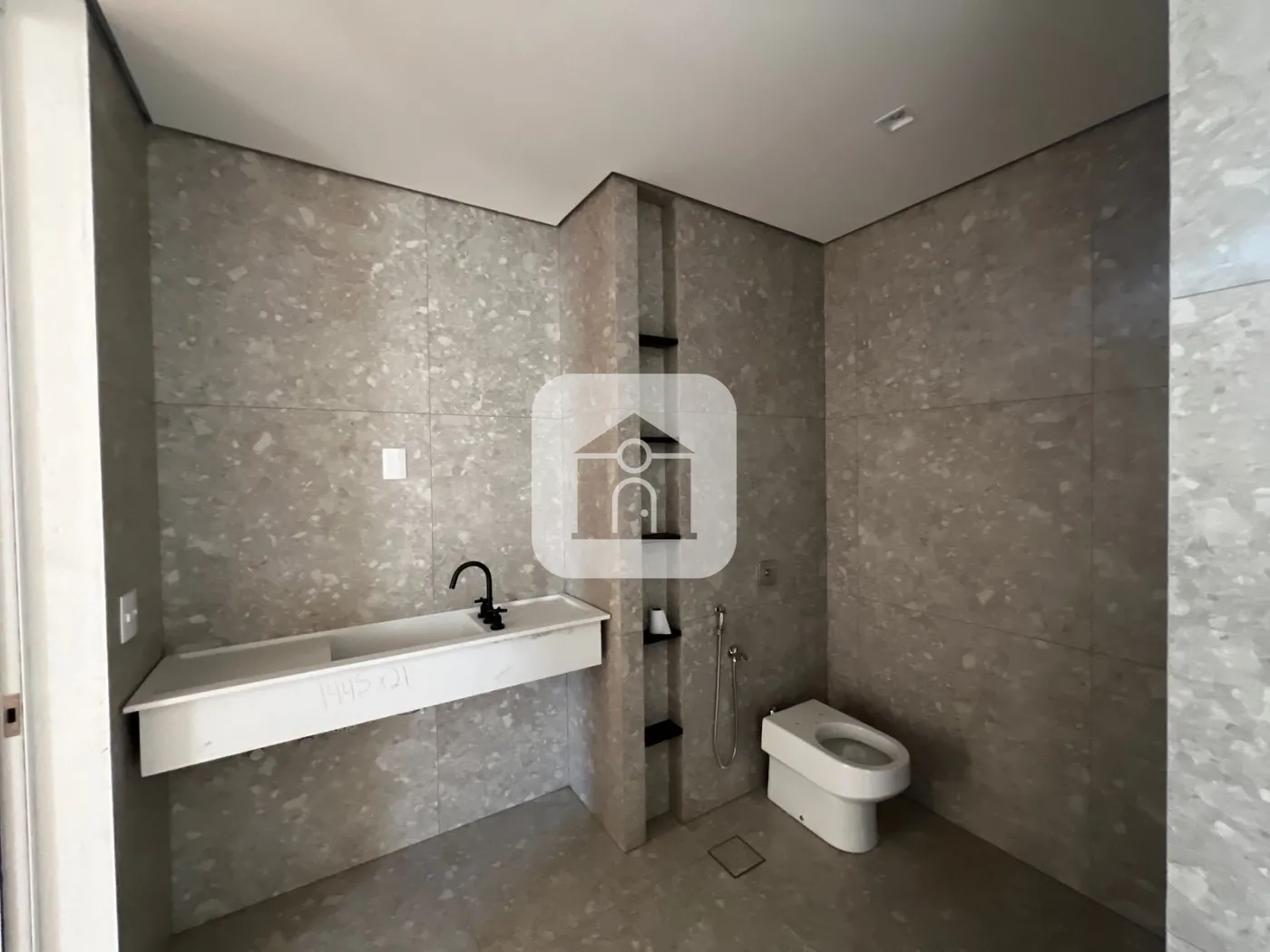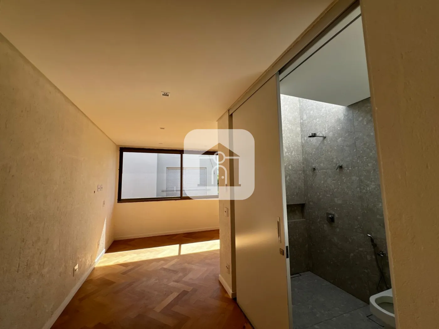 São 04 suítes, sendo 03 no pavimento térreo e 01 suíte de visitas no pavimento inferior, com total privacidade. Conta ainda com um depósito de 7,6m², todo em porcelanato Porto Bello Pietra Lombarda, com potencial para ser transformado em escritório.