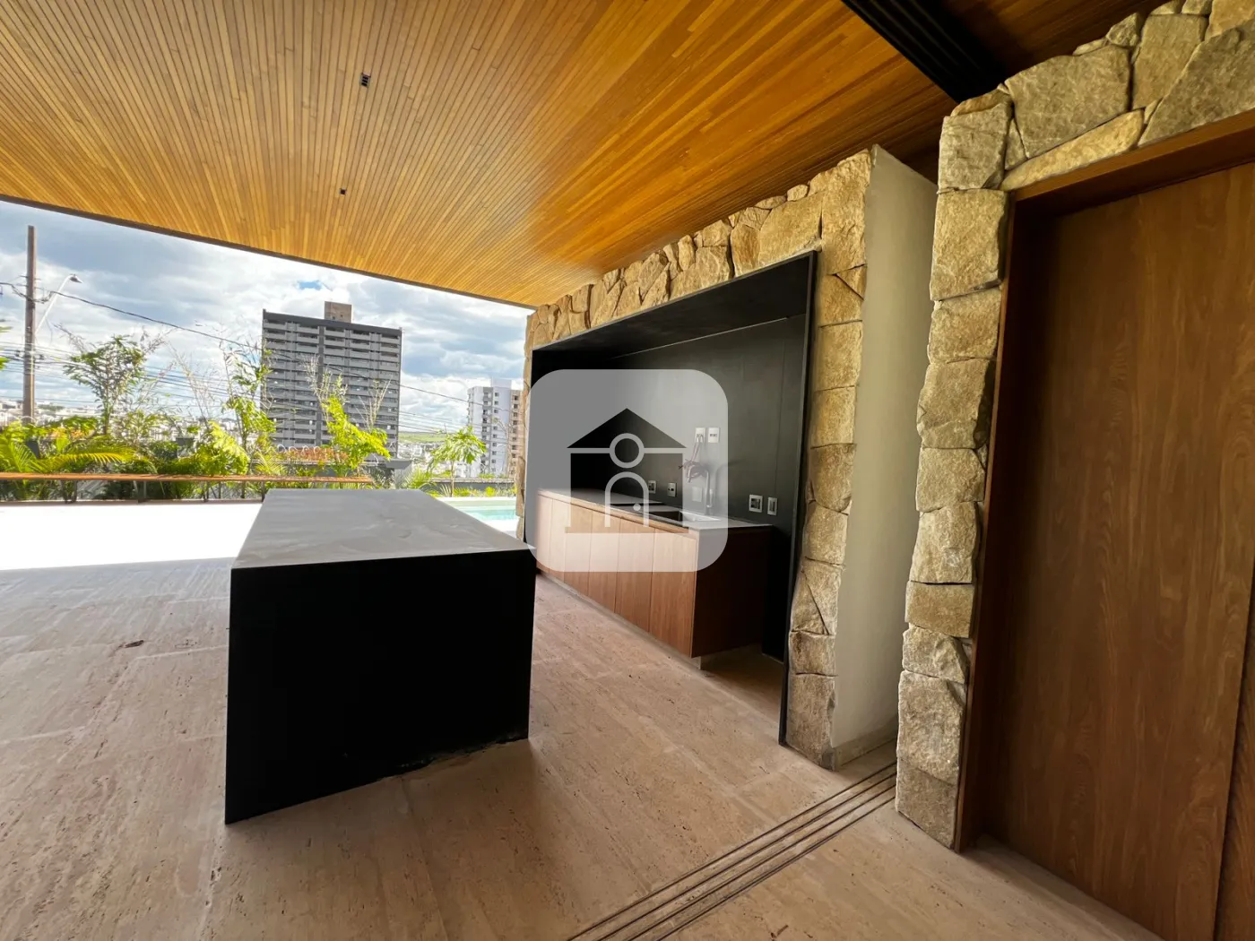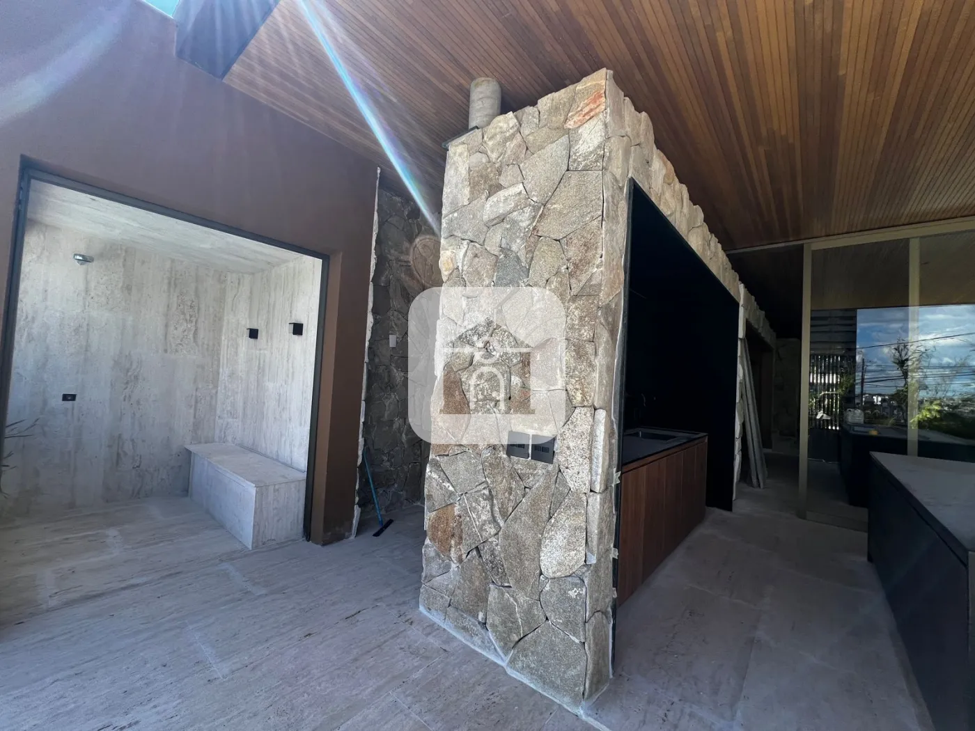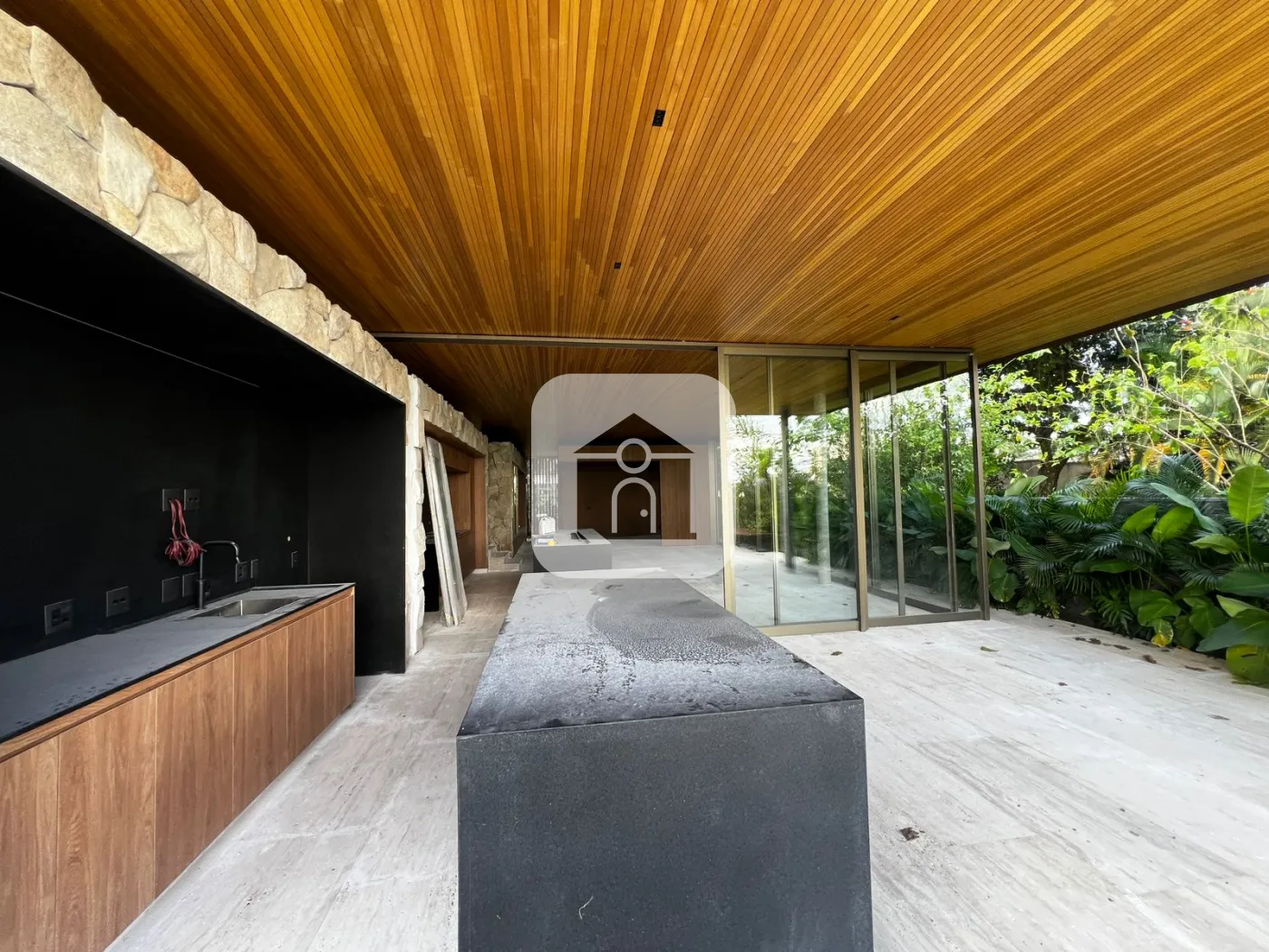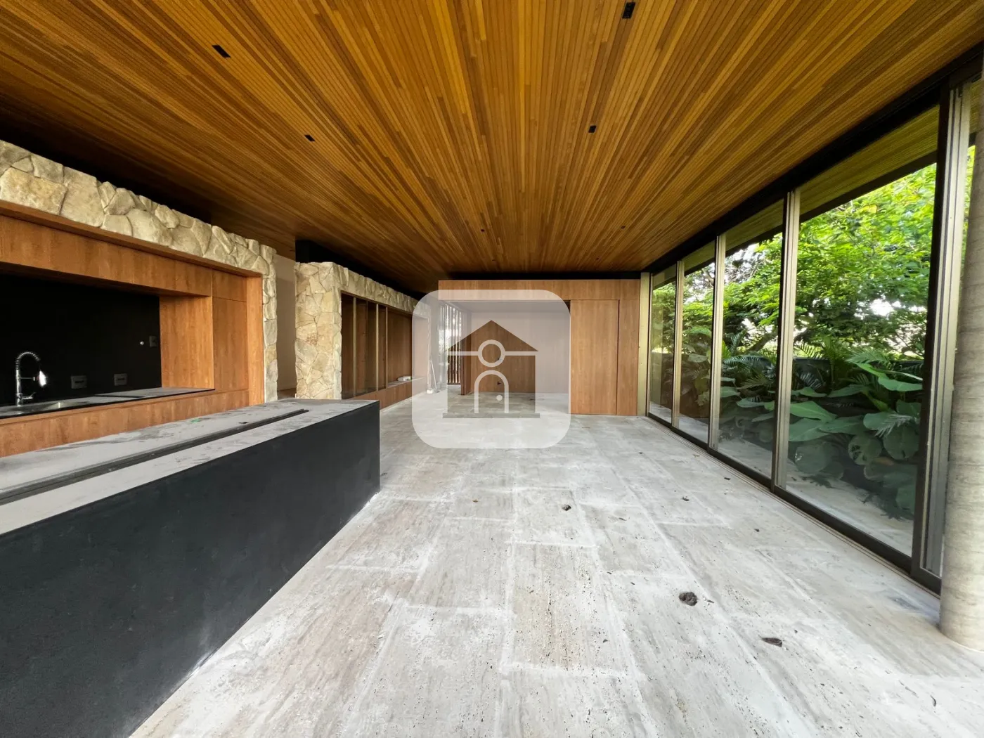 O forro da área social e da marquise é todo em ripado padrão exportação de 3cm em Tauari natural. A marcenaria Djor A++ já está inclusa em toda a área social, com adega, armários, revestimentos de paredes e hall, além da laje e portas rebatíveis da sala de TV ? tudo impecável.