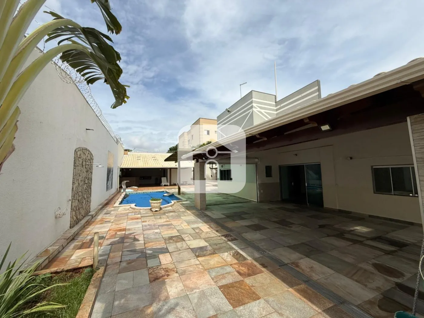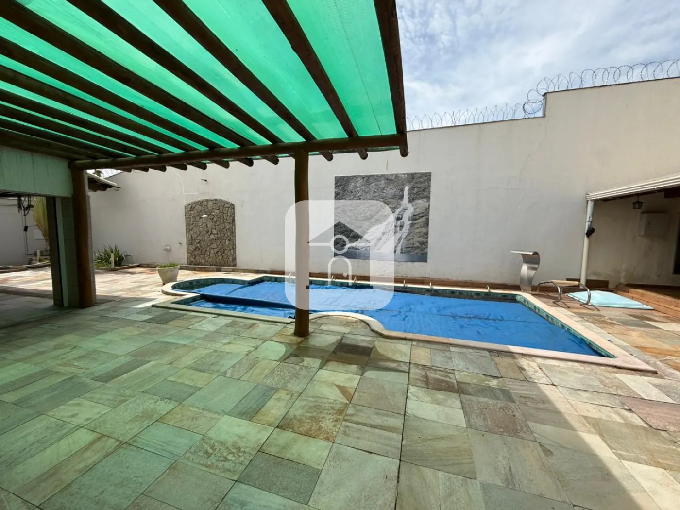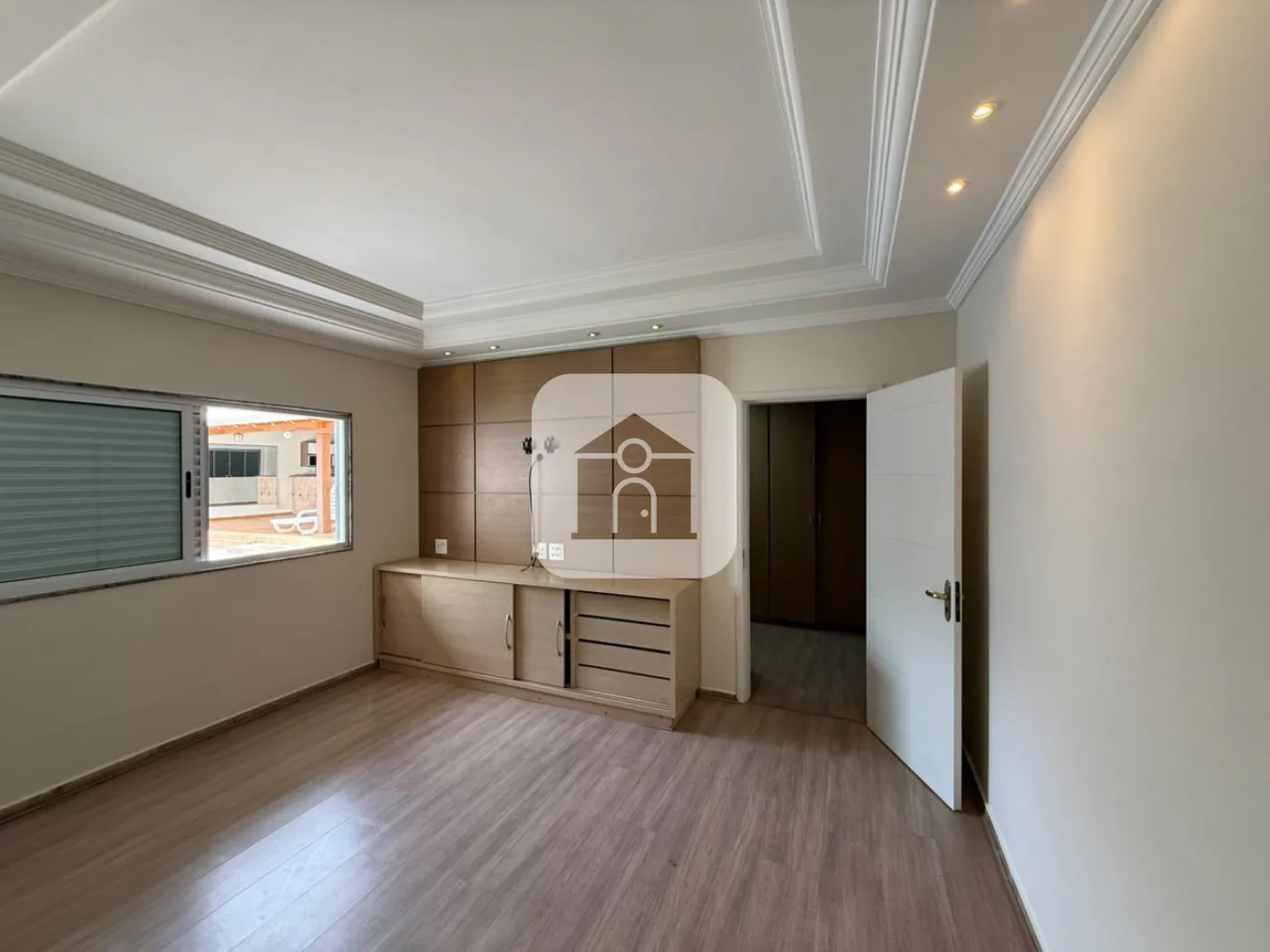 Janela Blindex, ampla, voltada para a piscina.