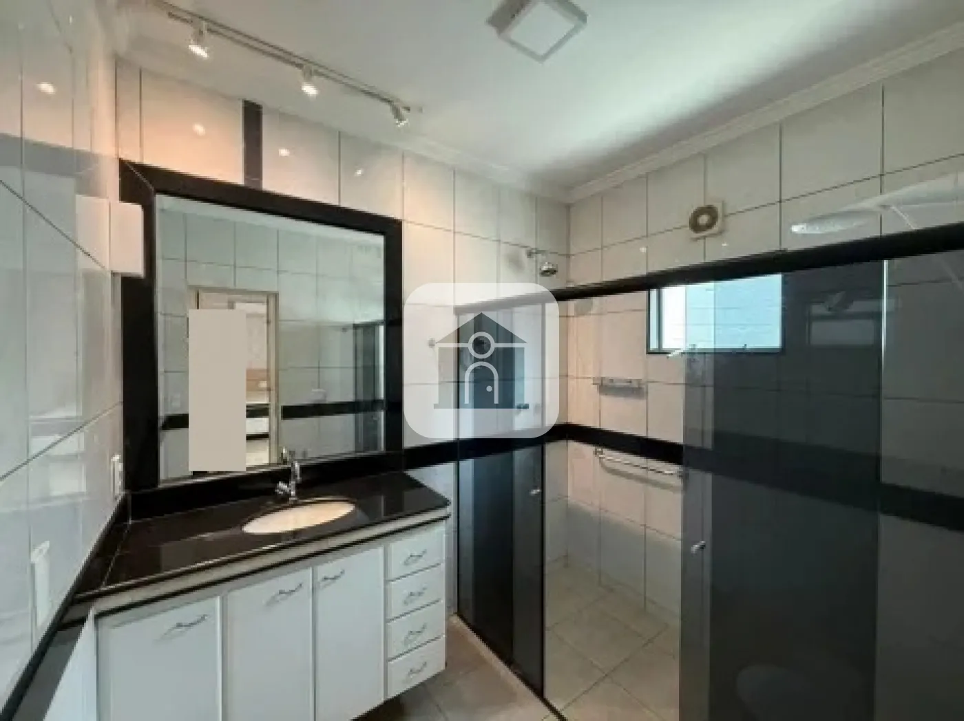 Banho com revestimento cerâmico do piso ate o teto.
