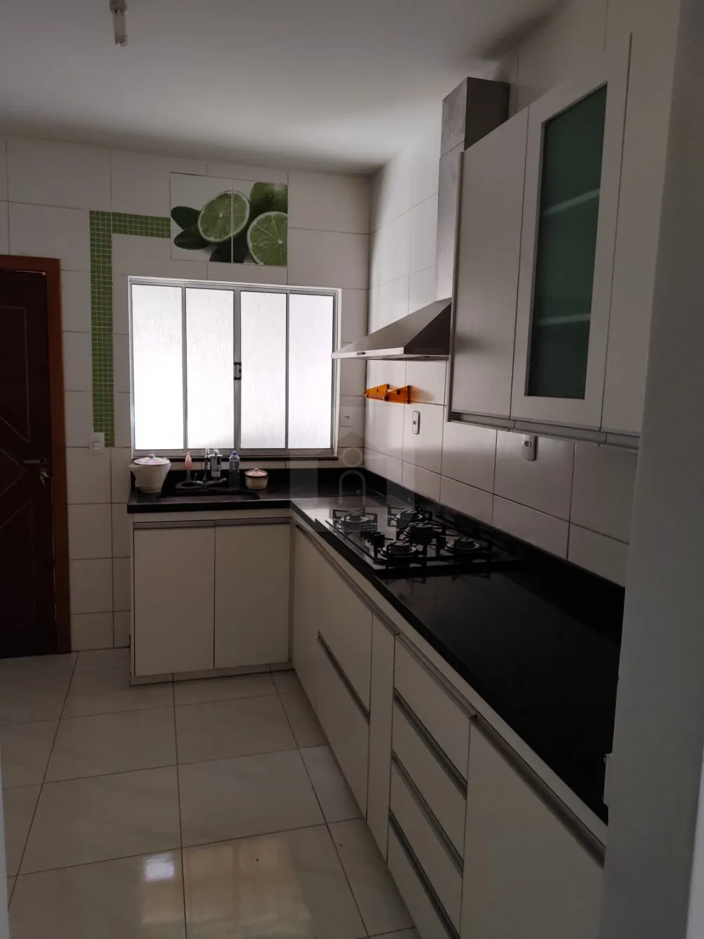 Cozinha toda com planejados, coifa e cooktop 5 bocas.