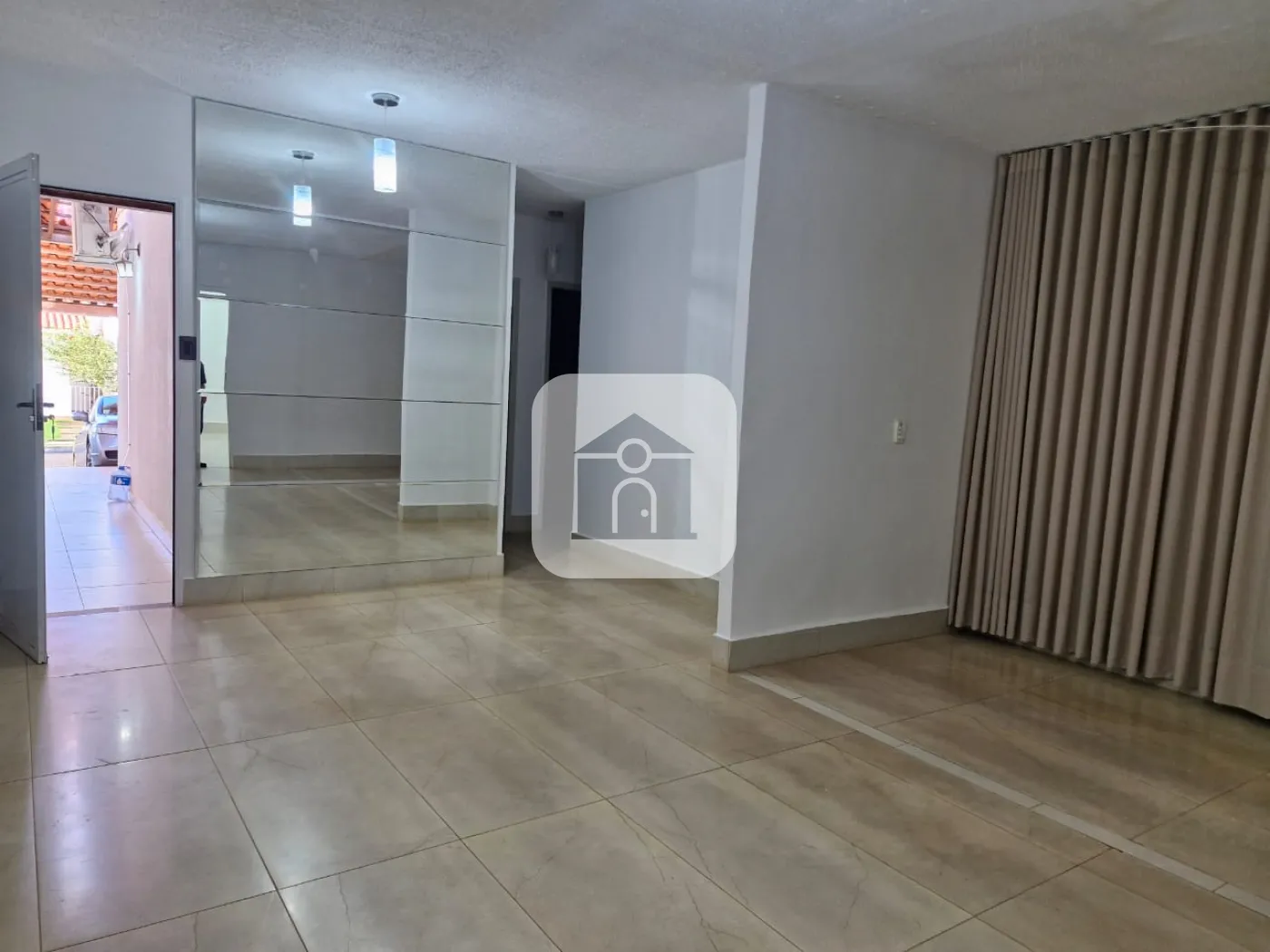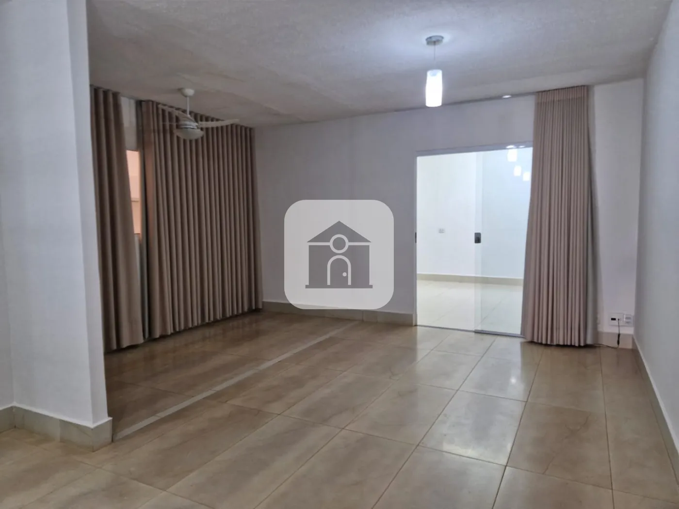 Sala ampla em 3 ambientes com cortinas