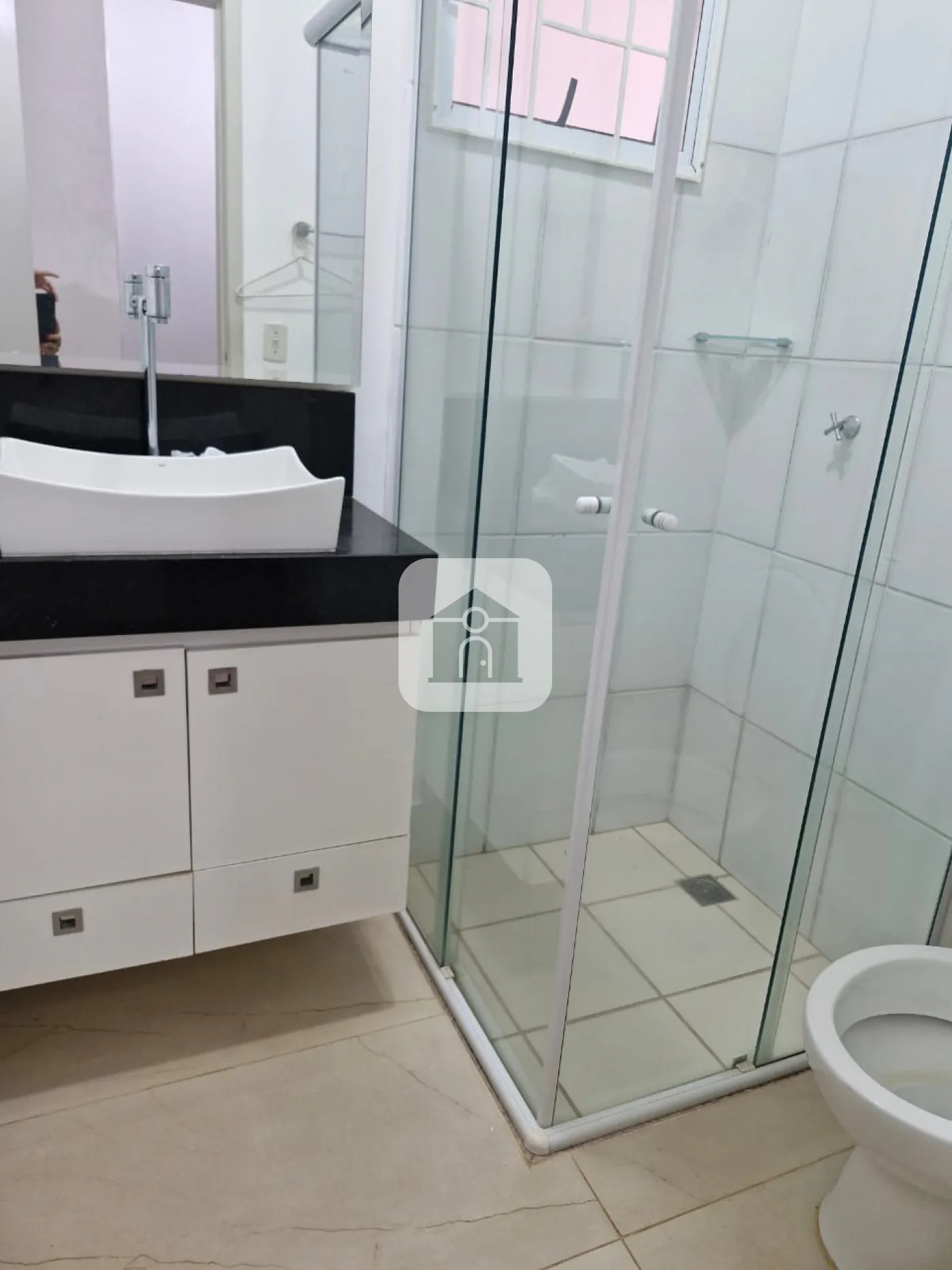 Banheiro social com armário e box