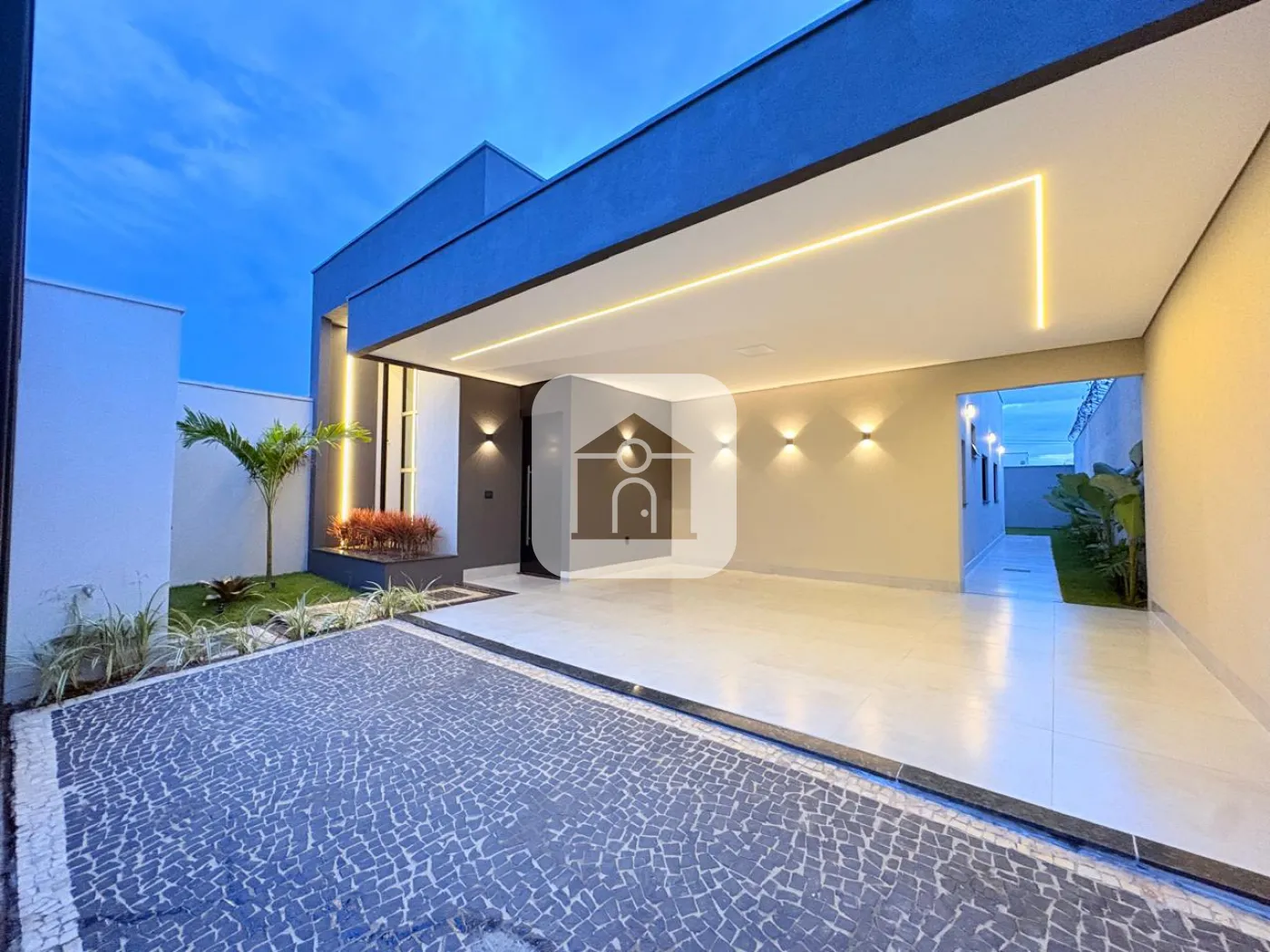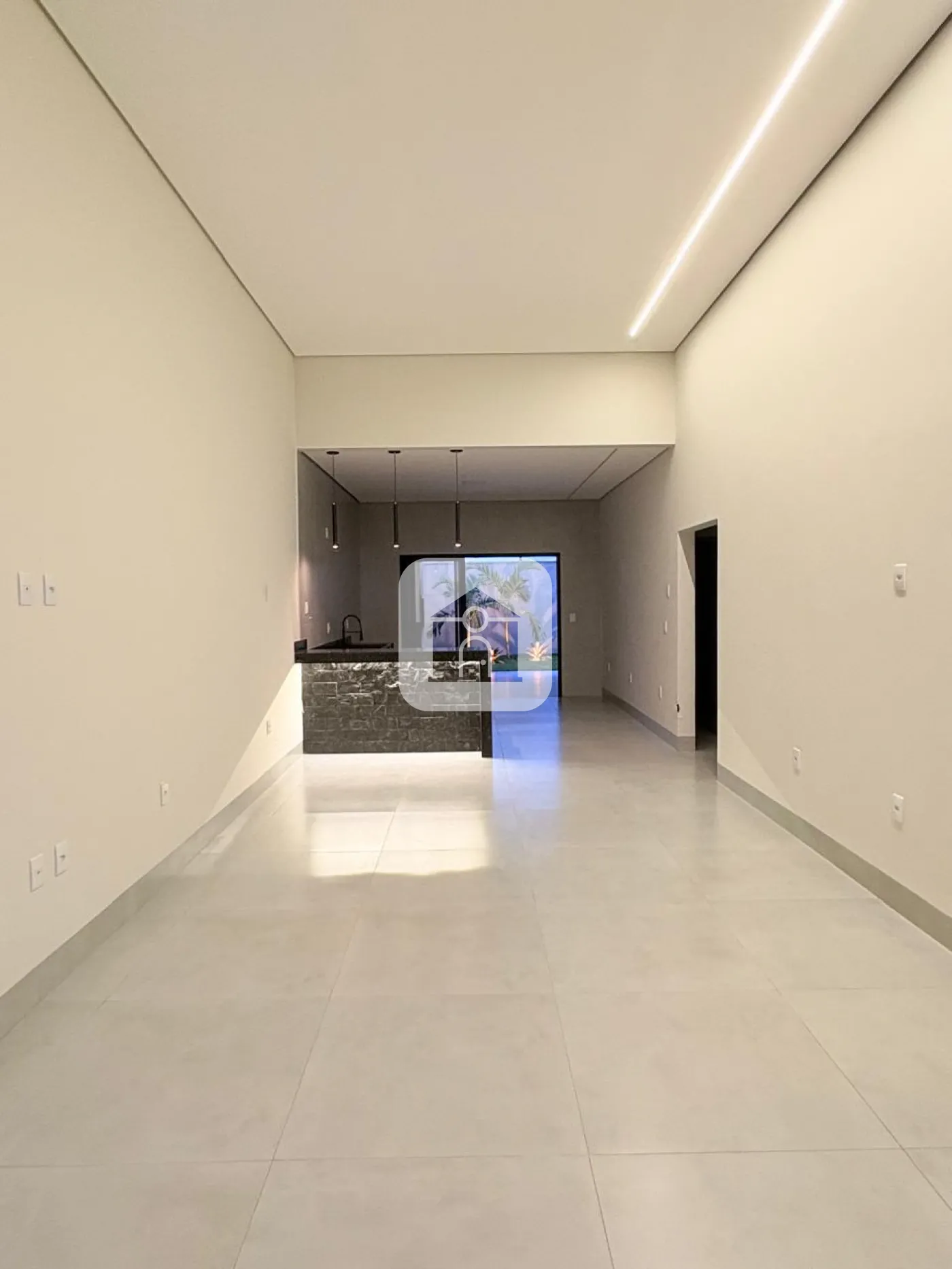 Casa toda em laje com acabamento em gesso e iluminação de LED embutida
