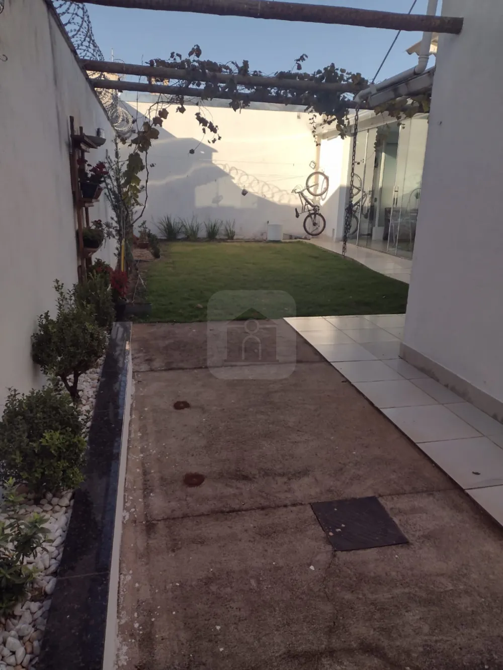 Ampla área externa com jardim.