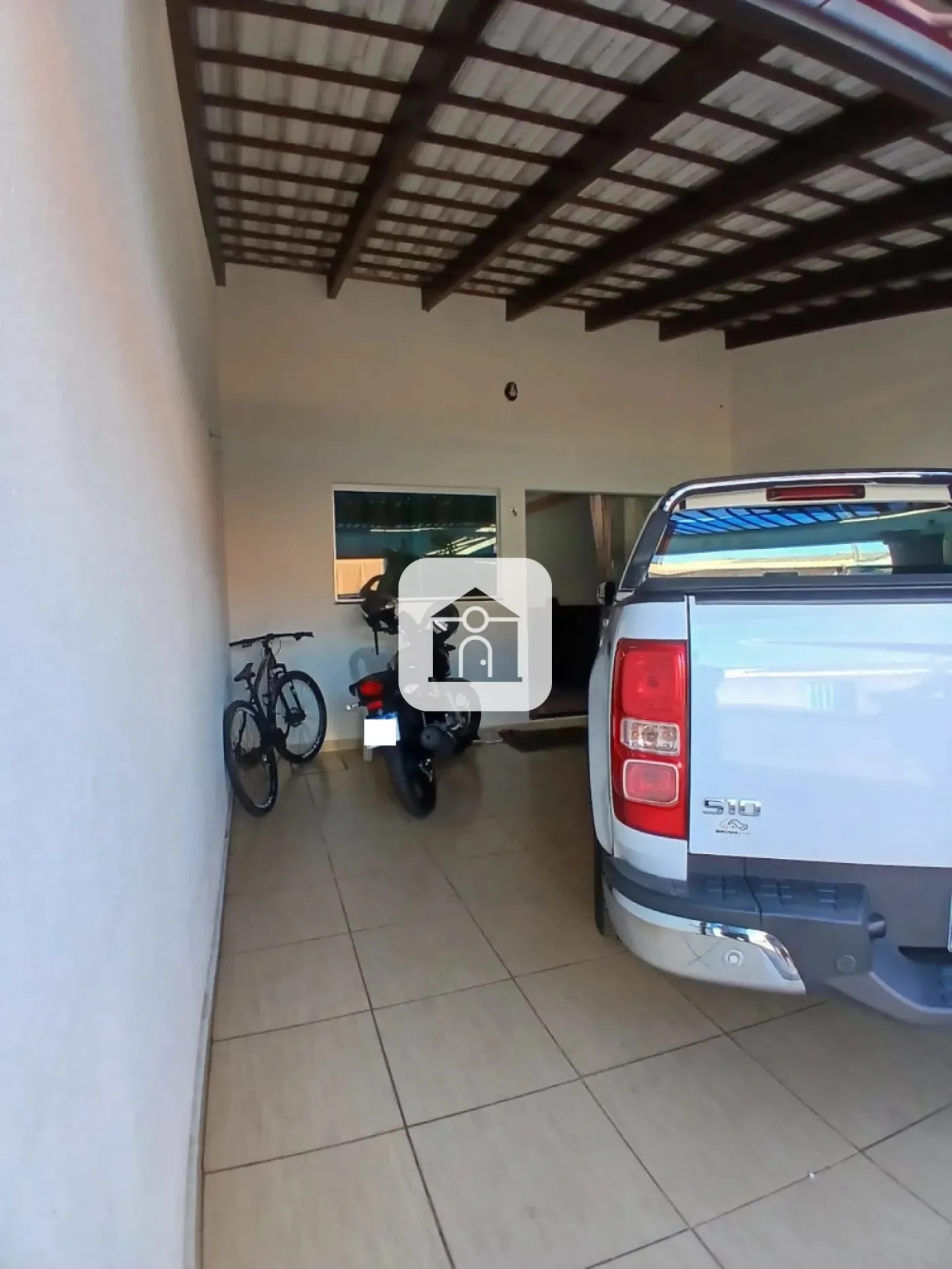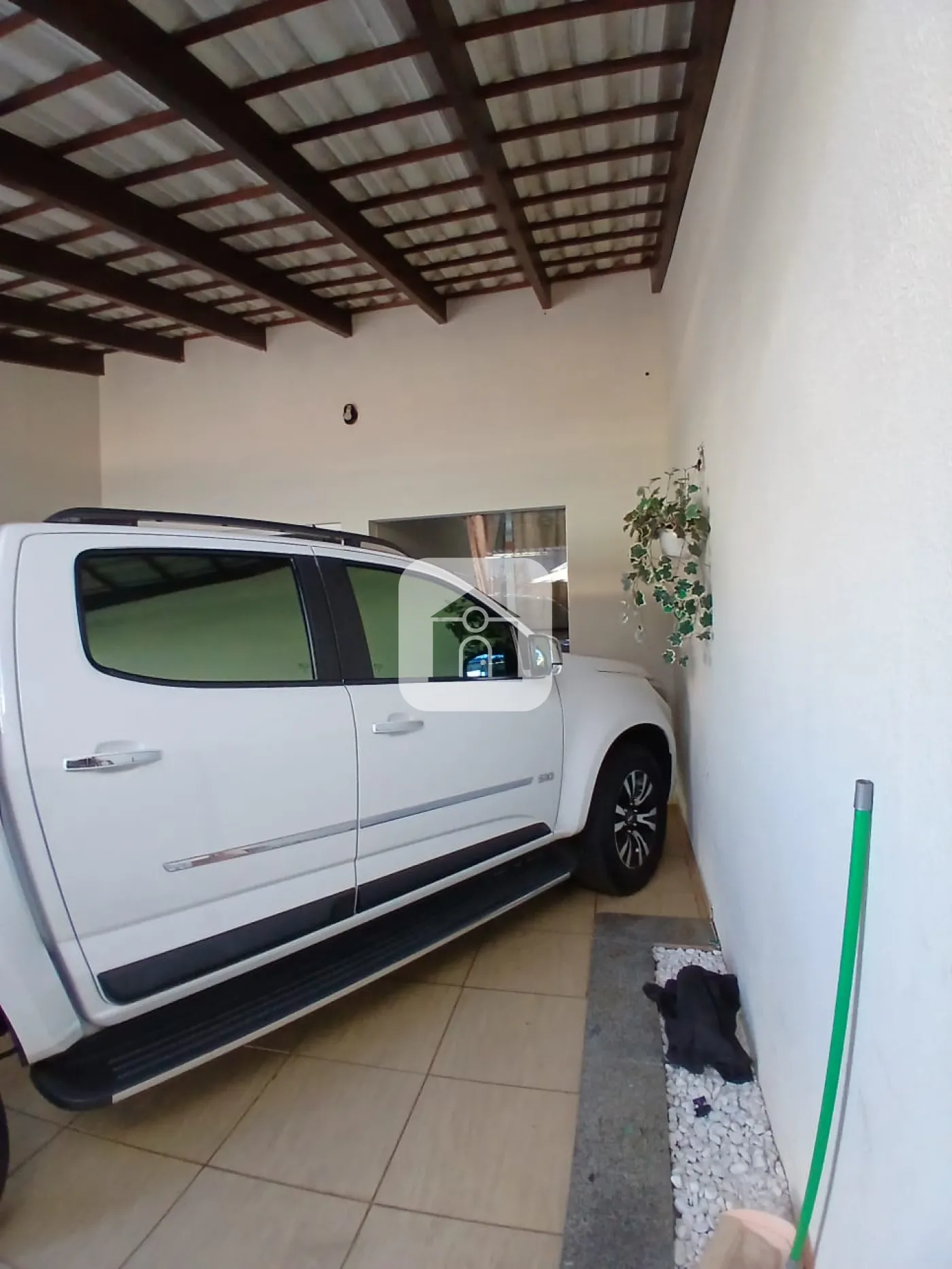 Varandas na frente para 02 veículos e telhado todo com telhas esmaltada com branco