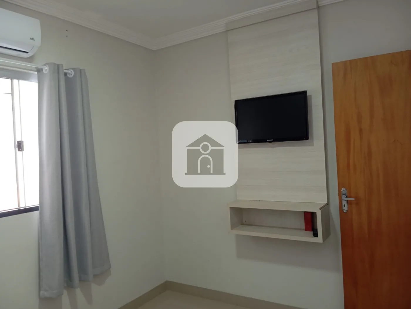 2 quartos sendo 1 com guarda roupa embutido e painel de tv.
