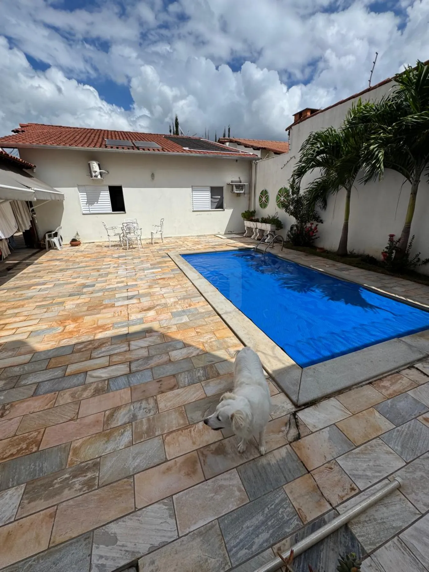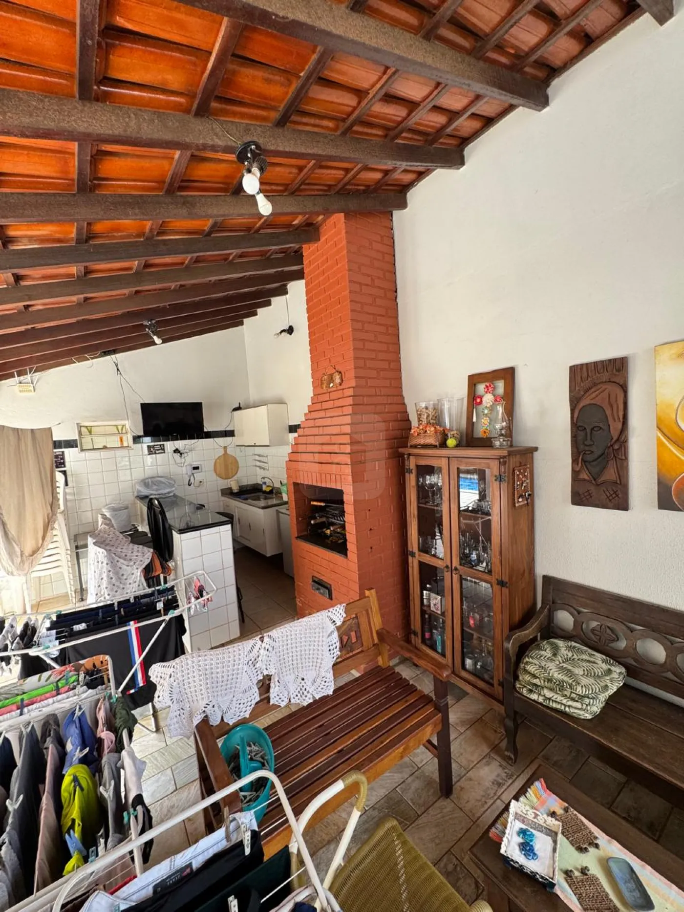 banheiro externo, quarto externo, área de churrasqueira com armários, quintal amplo com piscina e