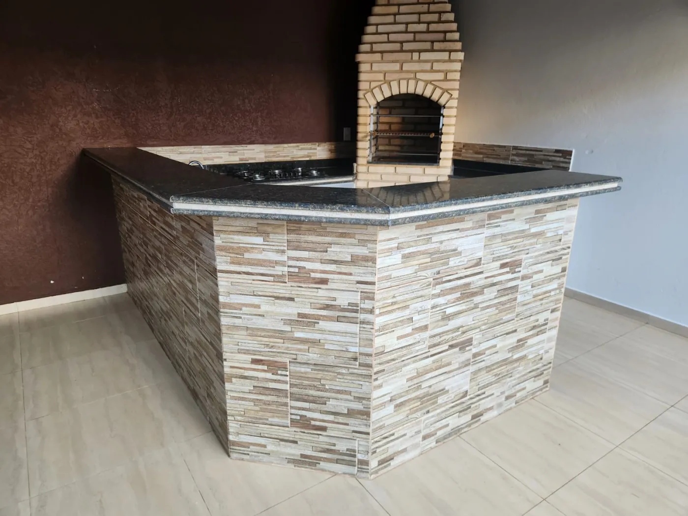 Edicula com Varanda, ducha, churrasqueira, dispensa com parteiras de ardosia, Jardim externo, banheiro externo.