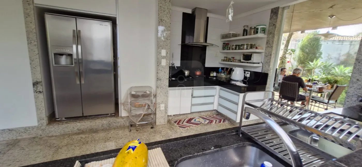 Casa em localização privilegiada com área territorial de 900m² e área construída de 600m², tendo pavimento térreo com Hall de entrada, lavabo, sala de vistas, sala de estar, sala de jantar, cozinha com armários, 02 pias, coktop, forno, 01 uma suíte com armários, box e espelho lavanderia, varanda com bancada, comôdo de despejo, dispensa com prateleira, piscina, paisagismo, horta, garagem para 02 carros, estacionamento; pavimento superior com sala, 05 suites com armários, box em vidro temperado (sendo 02 com sala intima, uma com varanda), escritório com pratelerias. Churrasqueira, Piscina