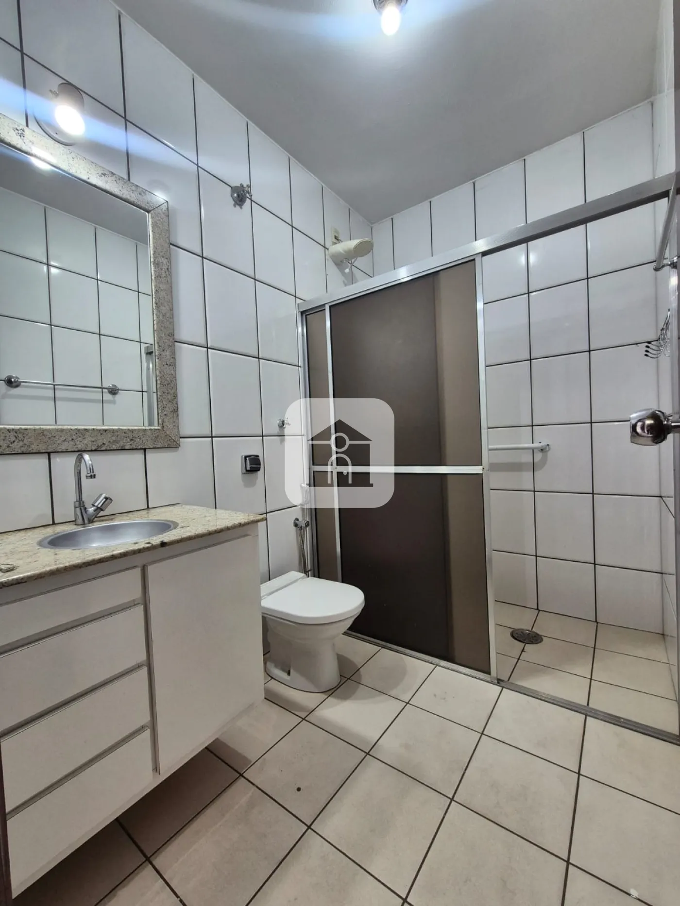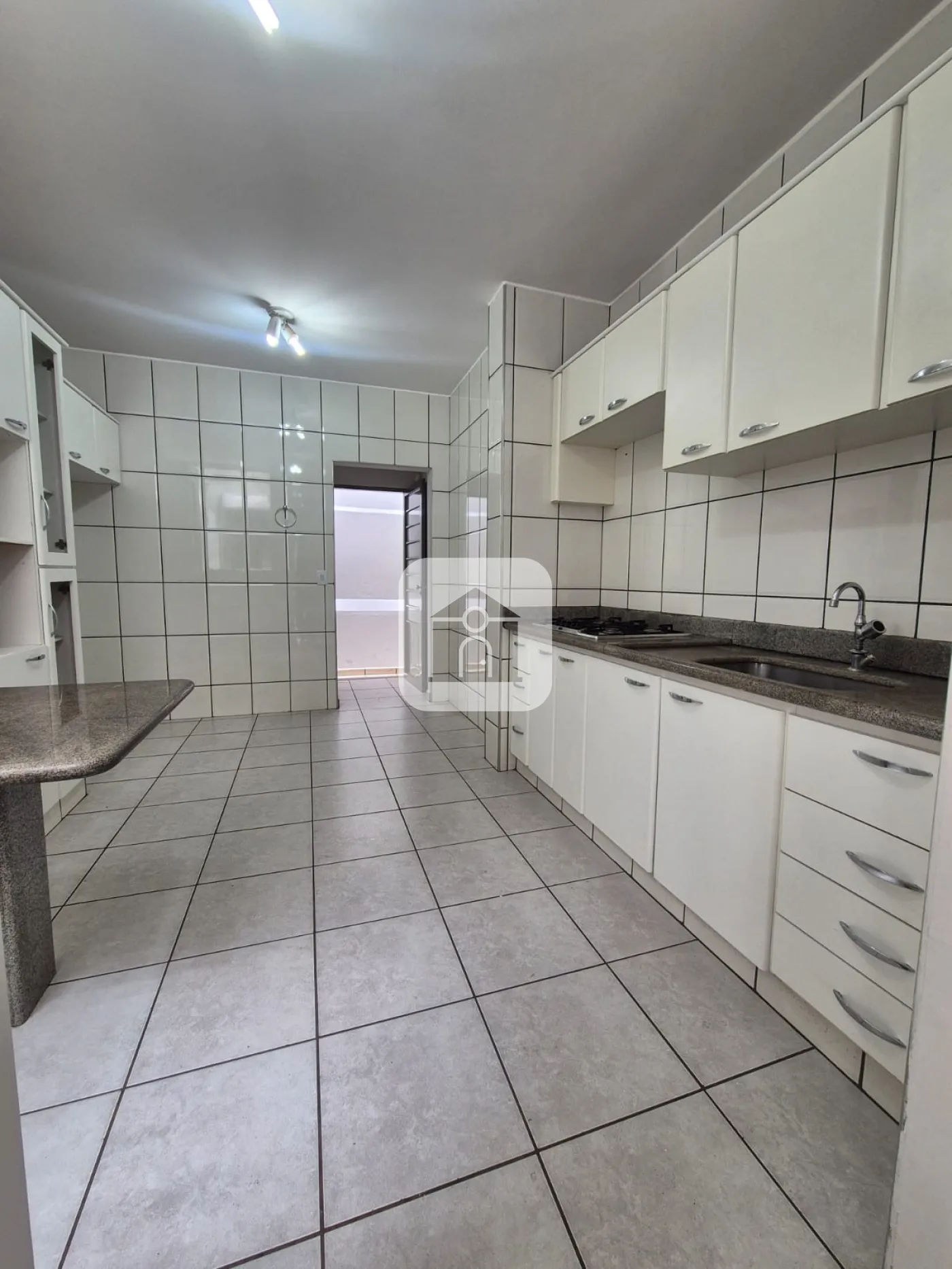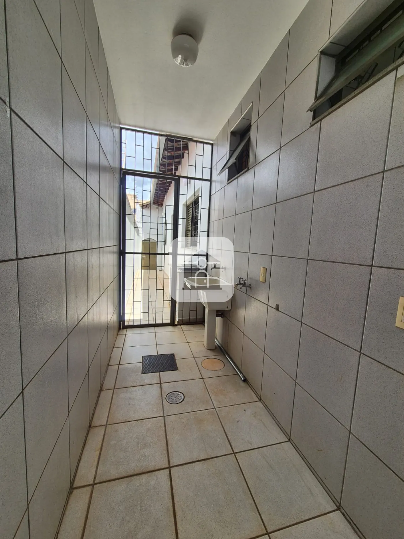 Garagem para 02 carros, piso cerâmico e laje.