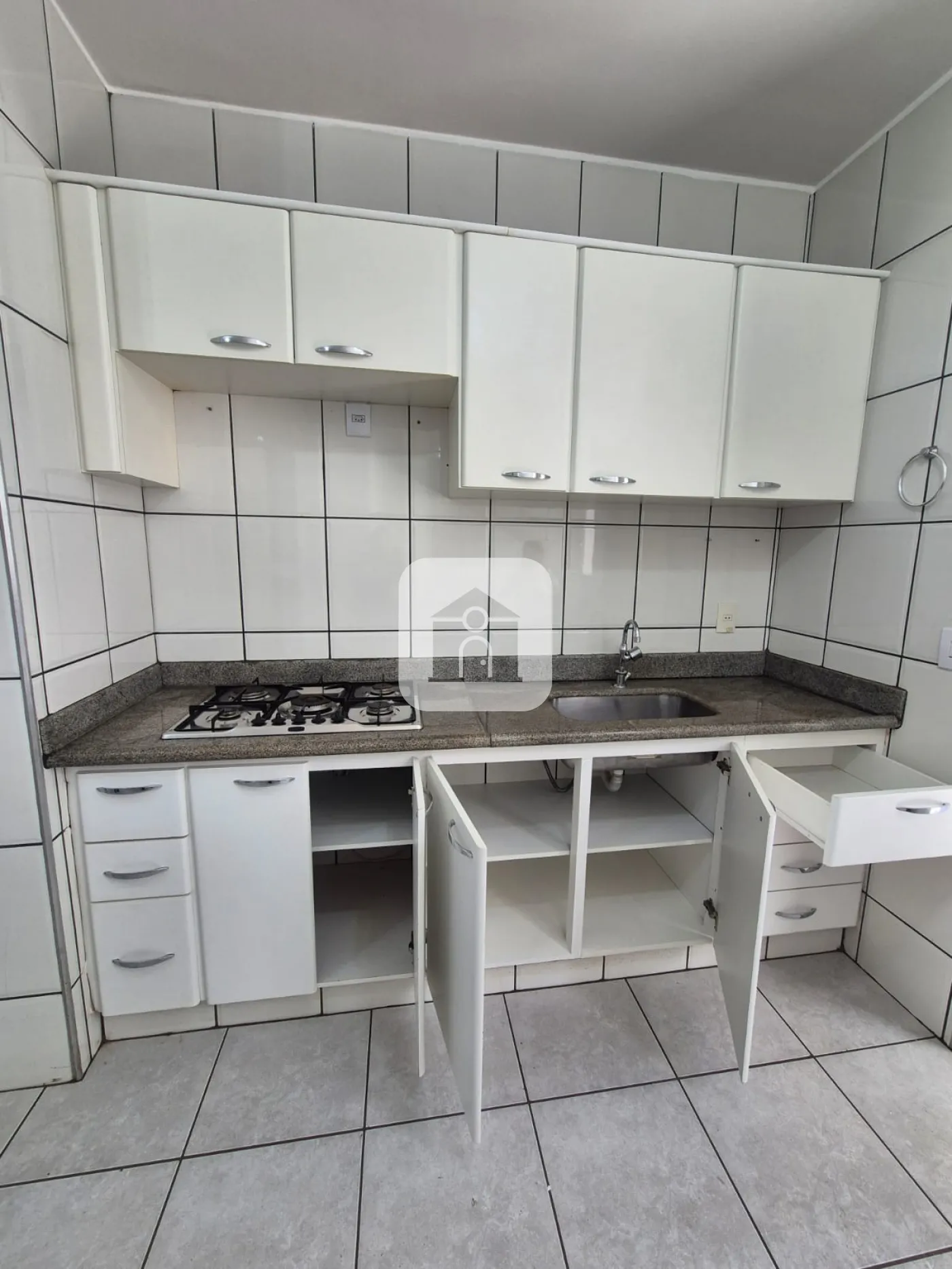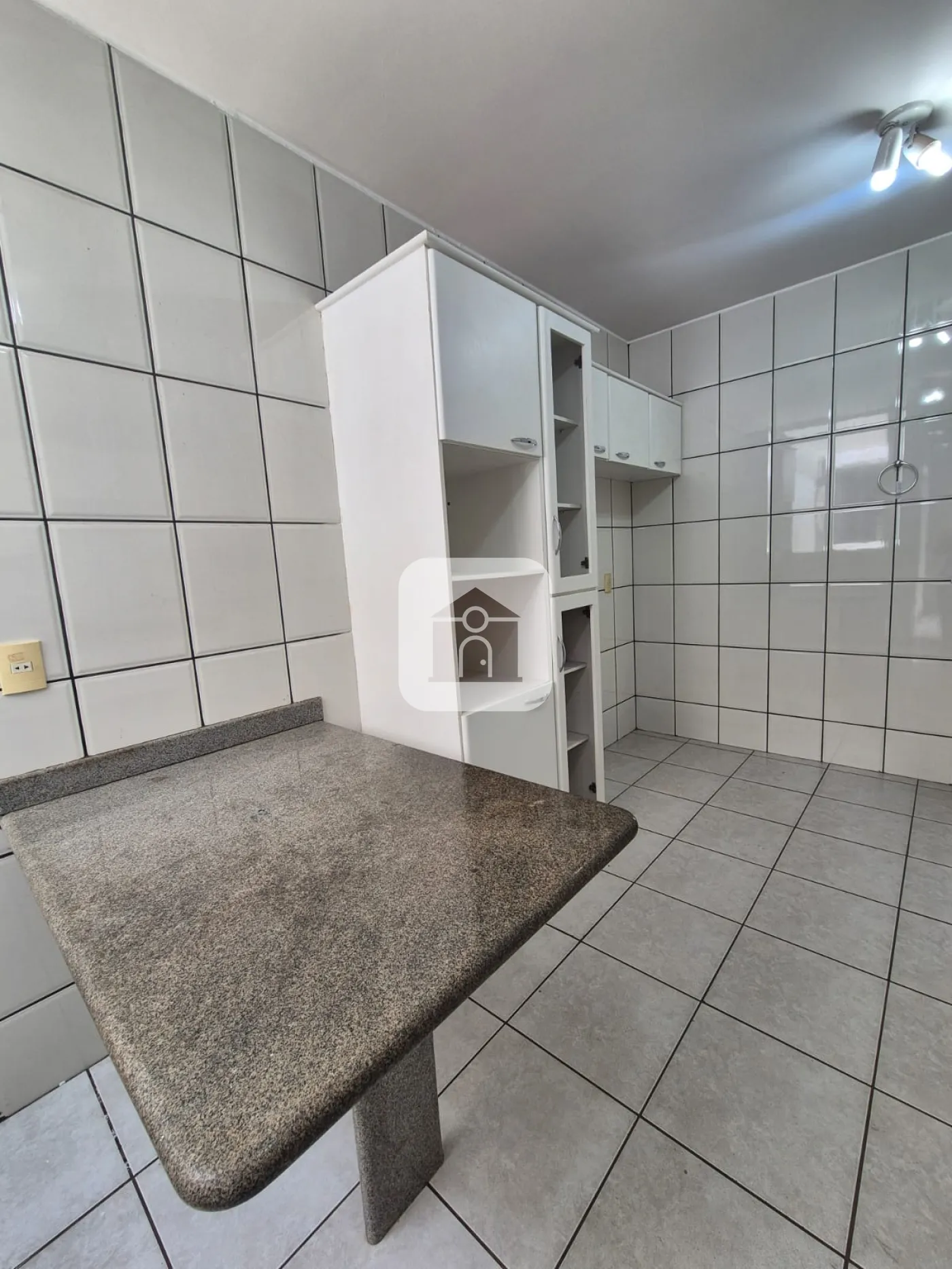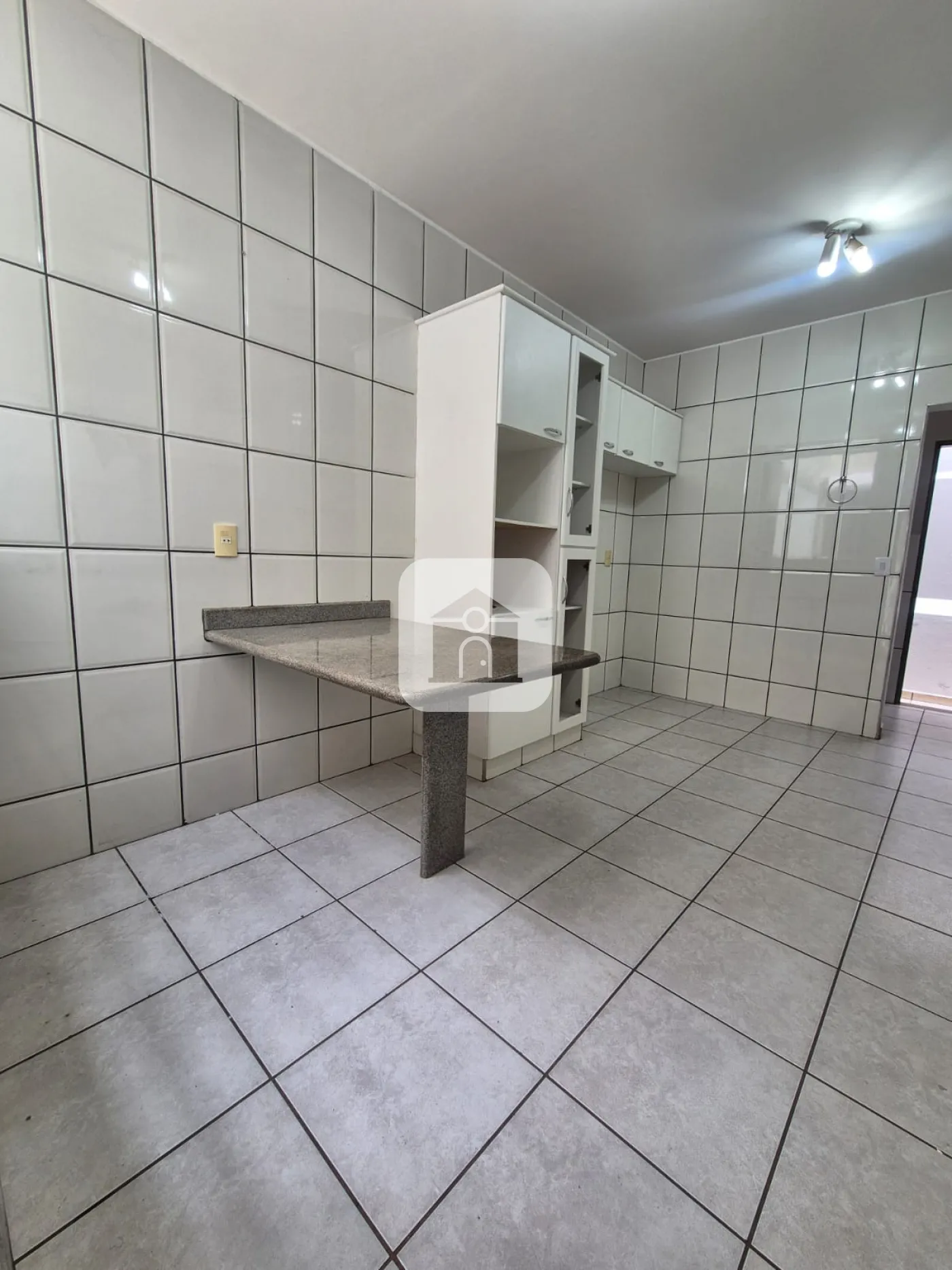 Garagem para 02 carros, piso cerâmico e laje.