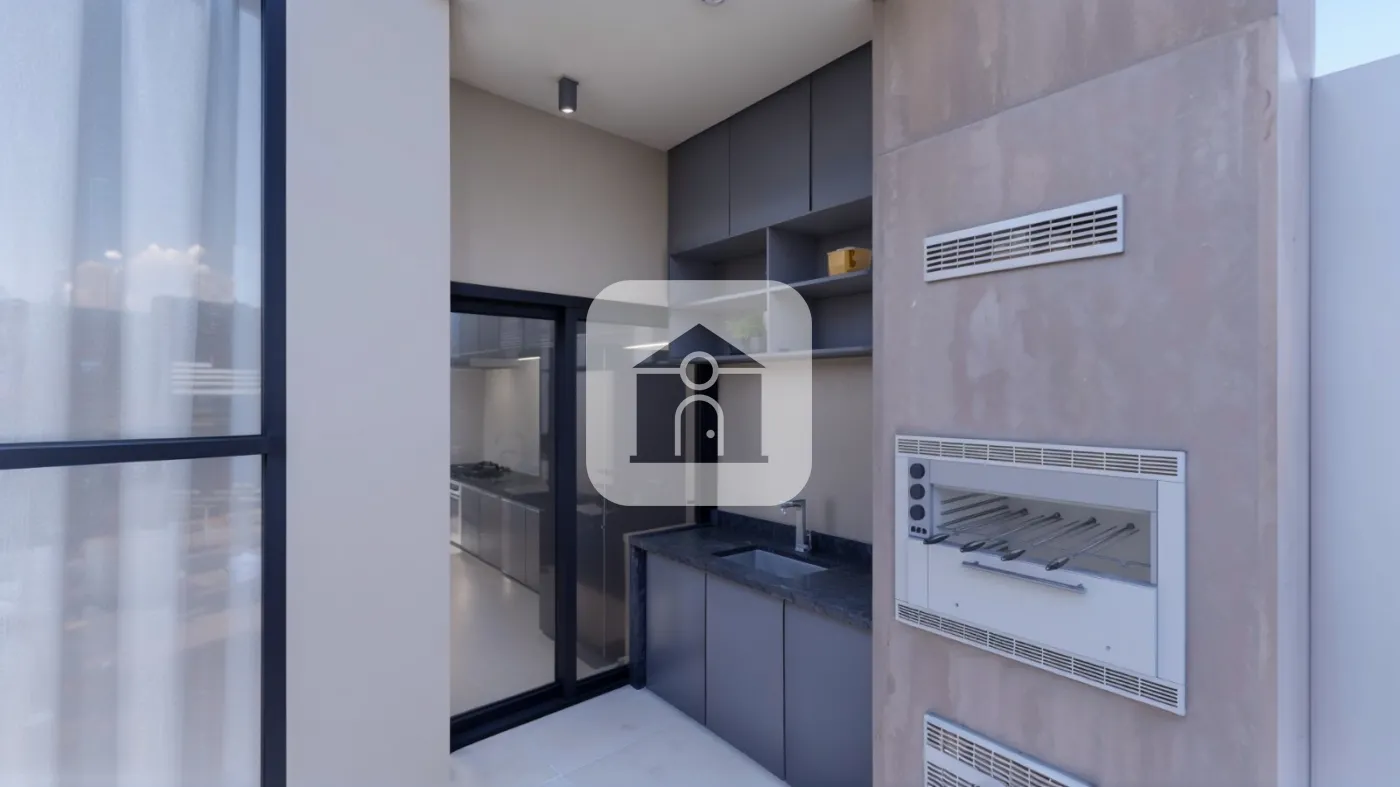 Área gourmet com churrasqueira, pia e bancada,