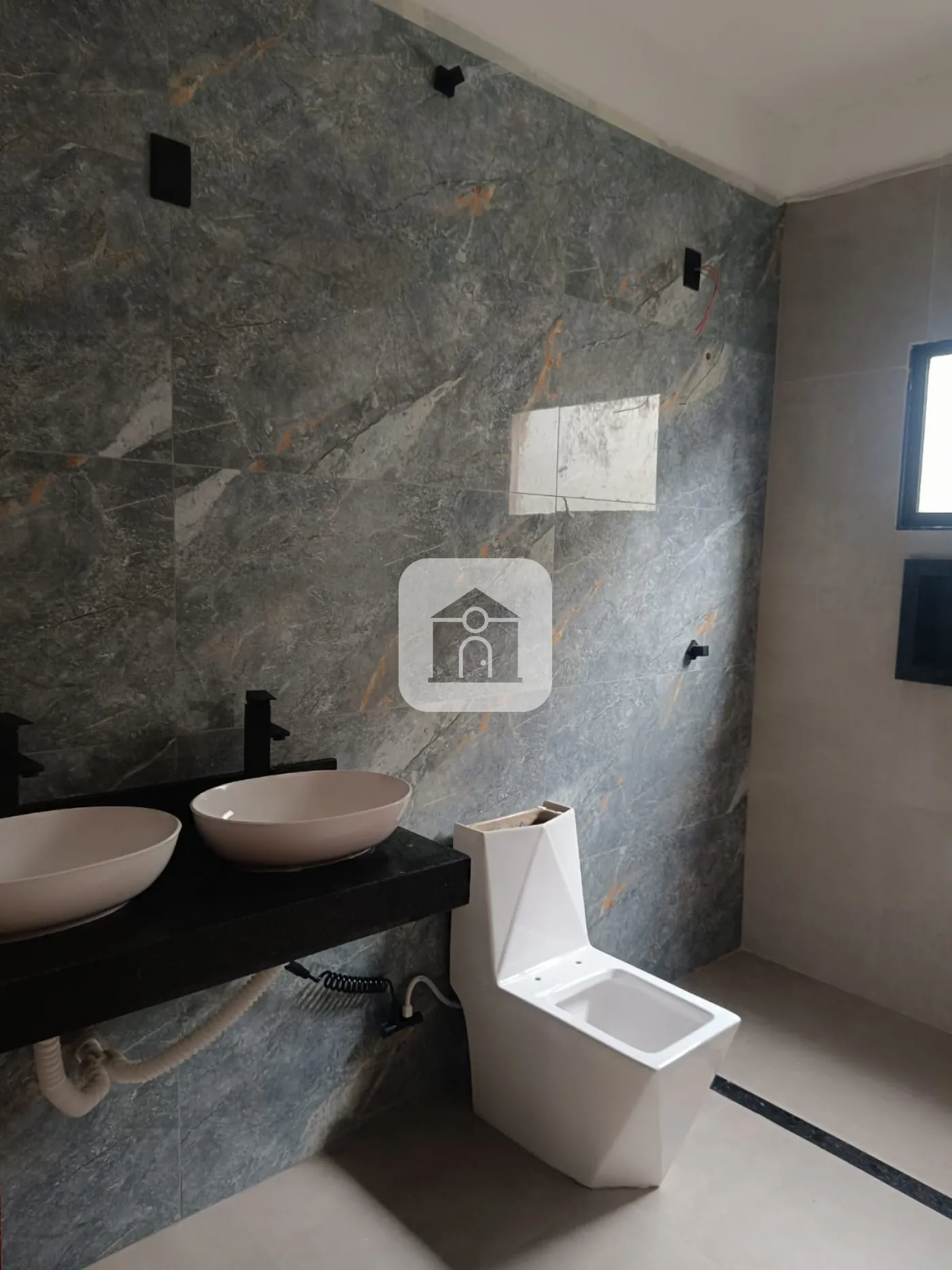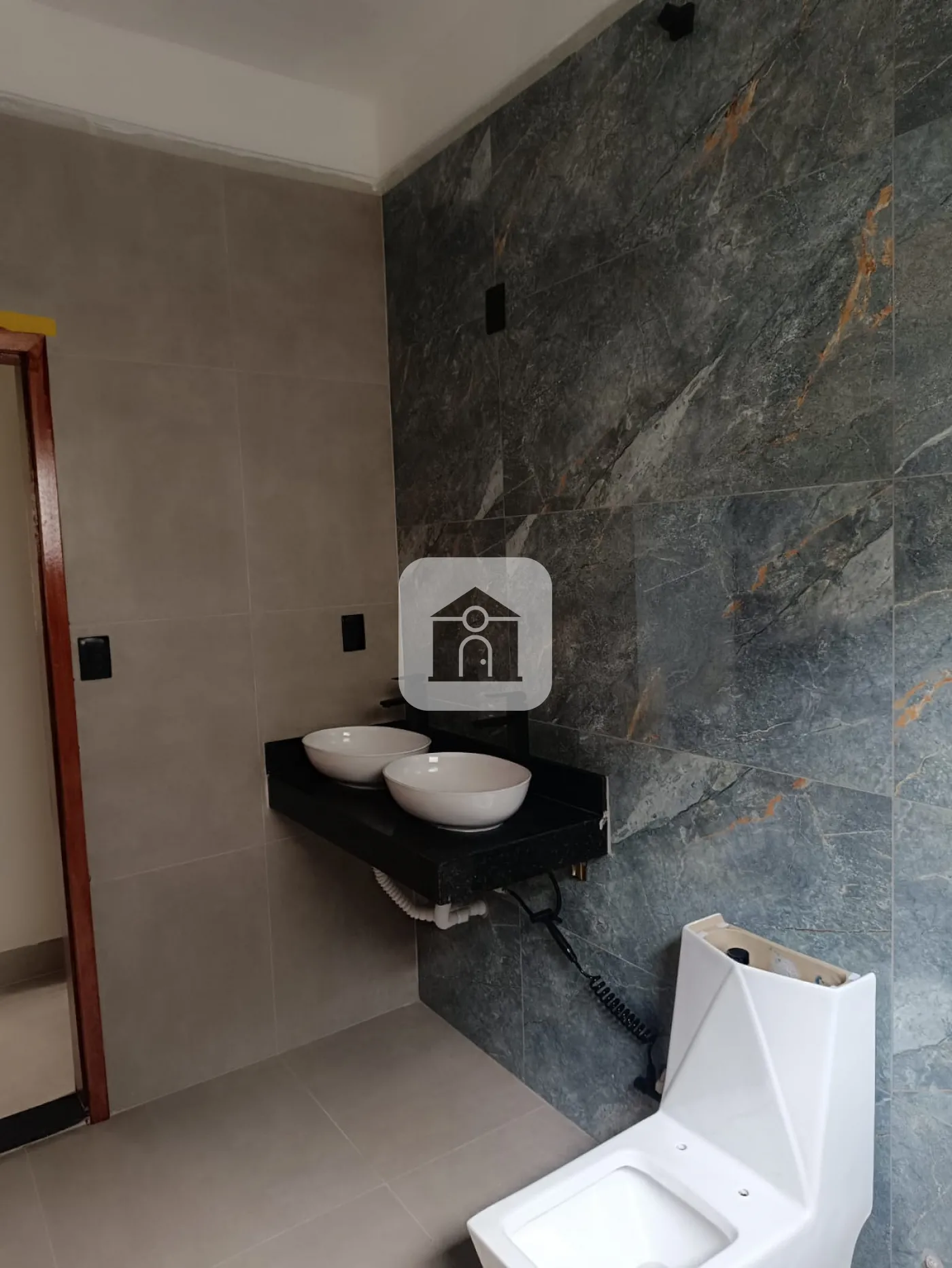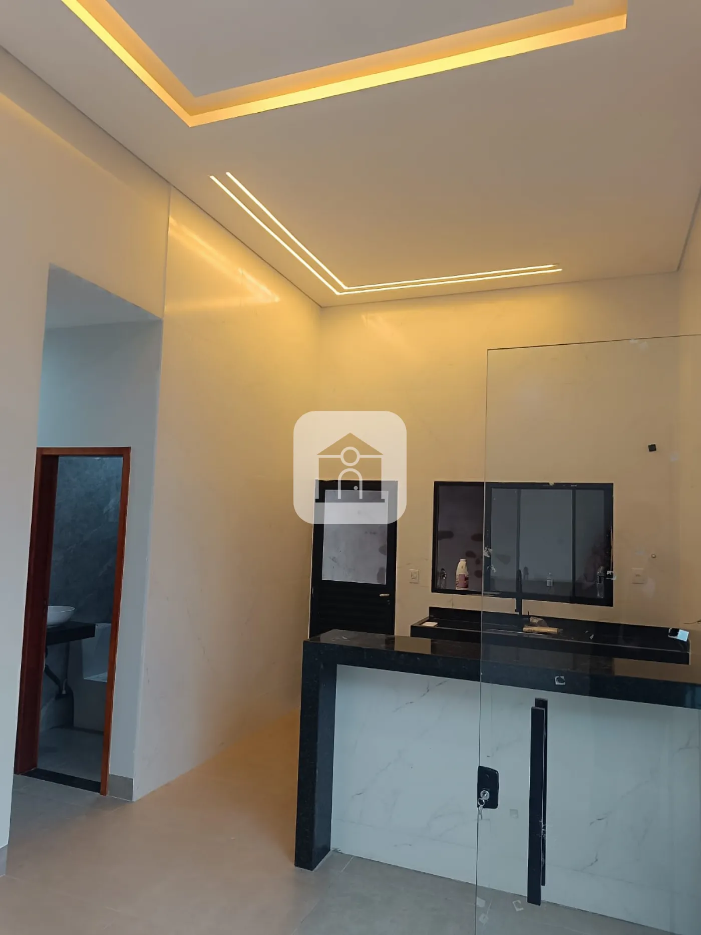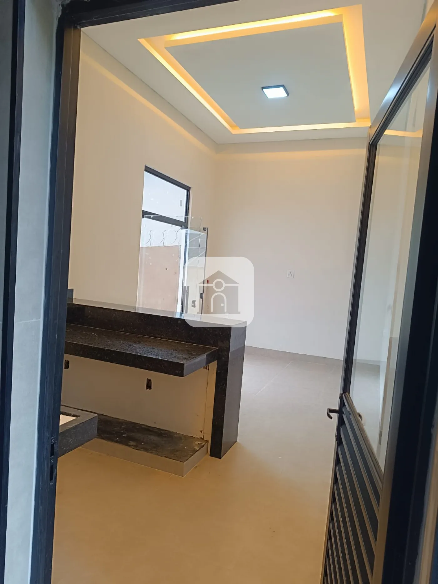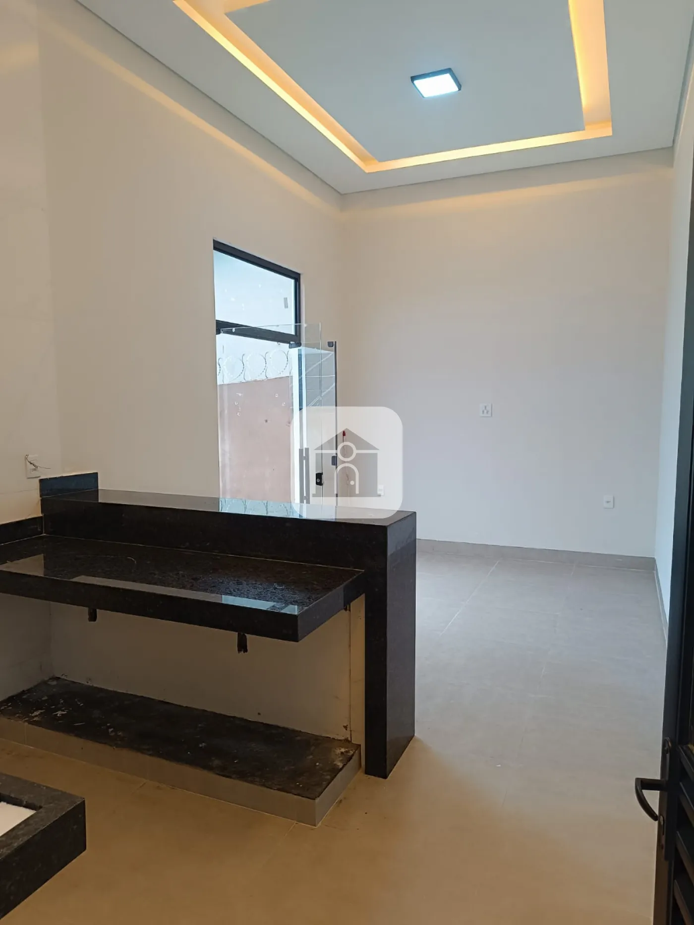 Pe direito duplo na sala e cozinha.