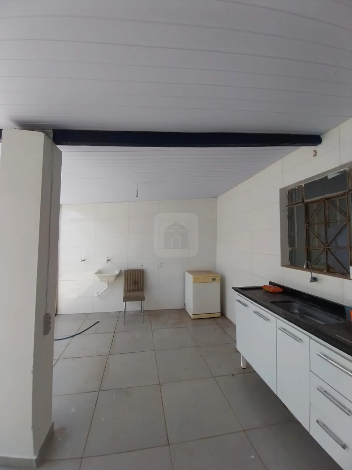 03 quartos, 01 banheiro social, sala, copa, cozinha com armário, área serviço, quintal, 02 garagens.