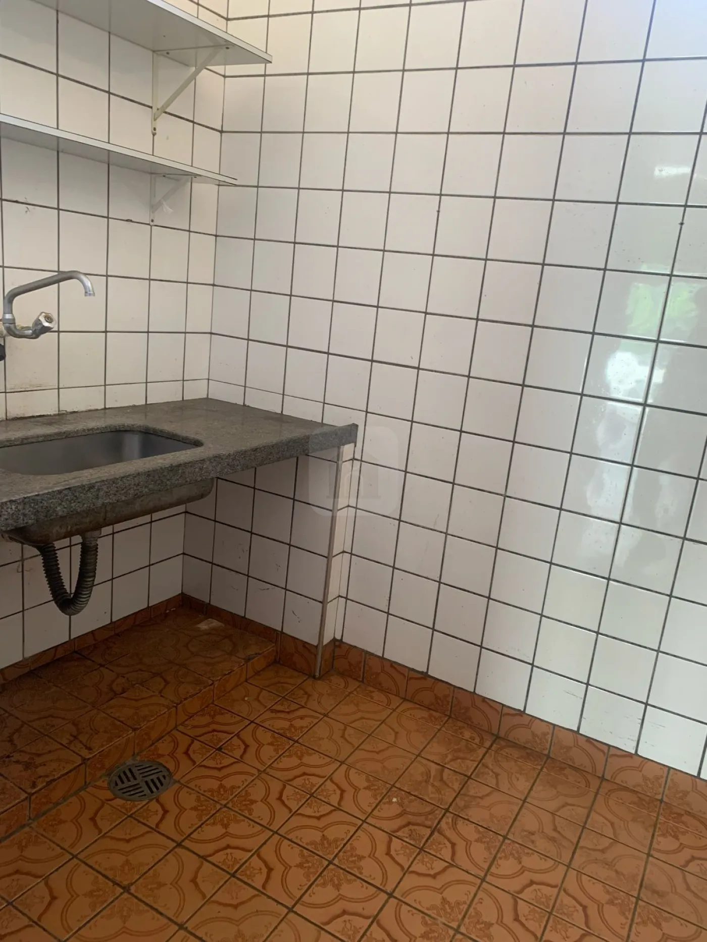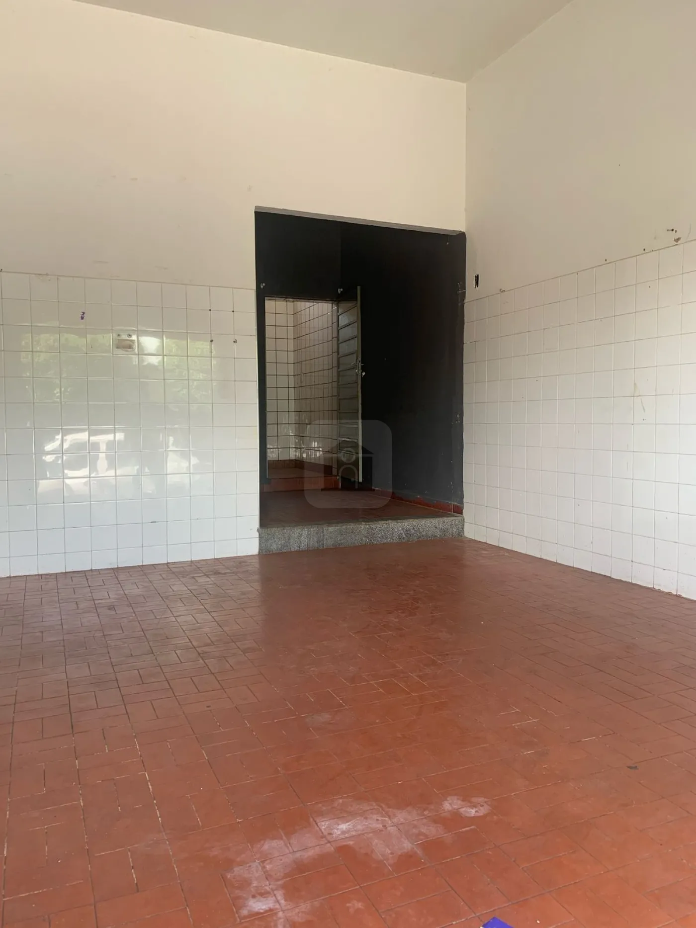 Cômodo comercial com cozinha e banheiro.