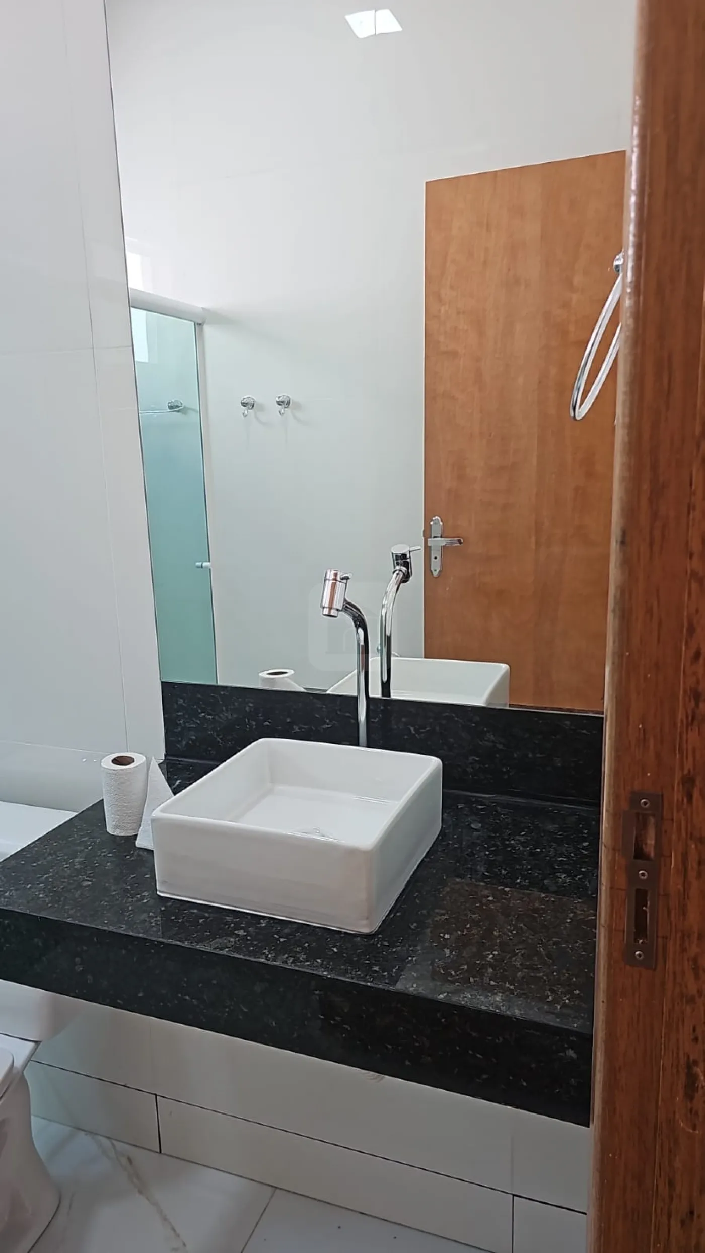 Banheiro Social Revestido Até O Teto Com Box, Espelho E Cuba;