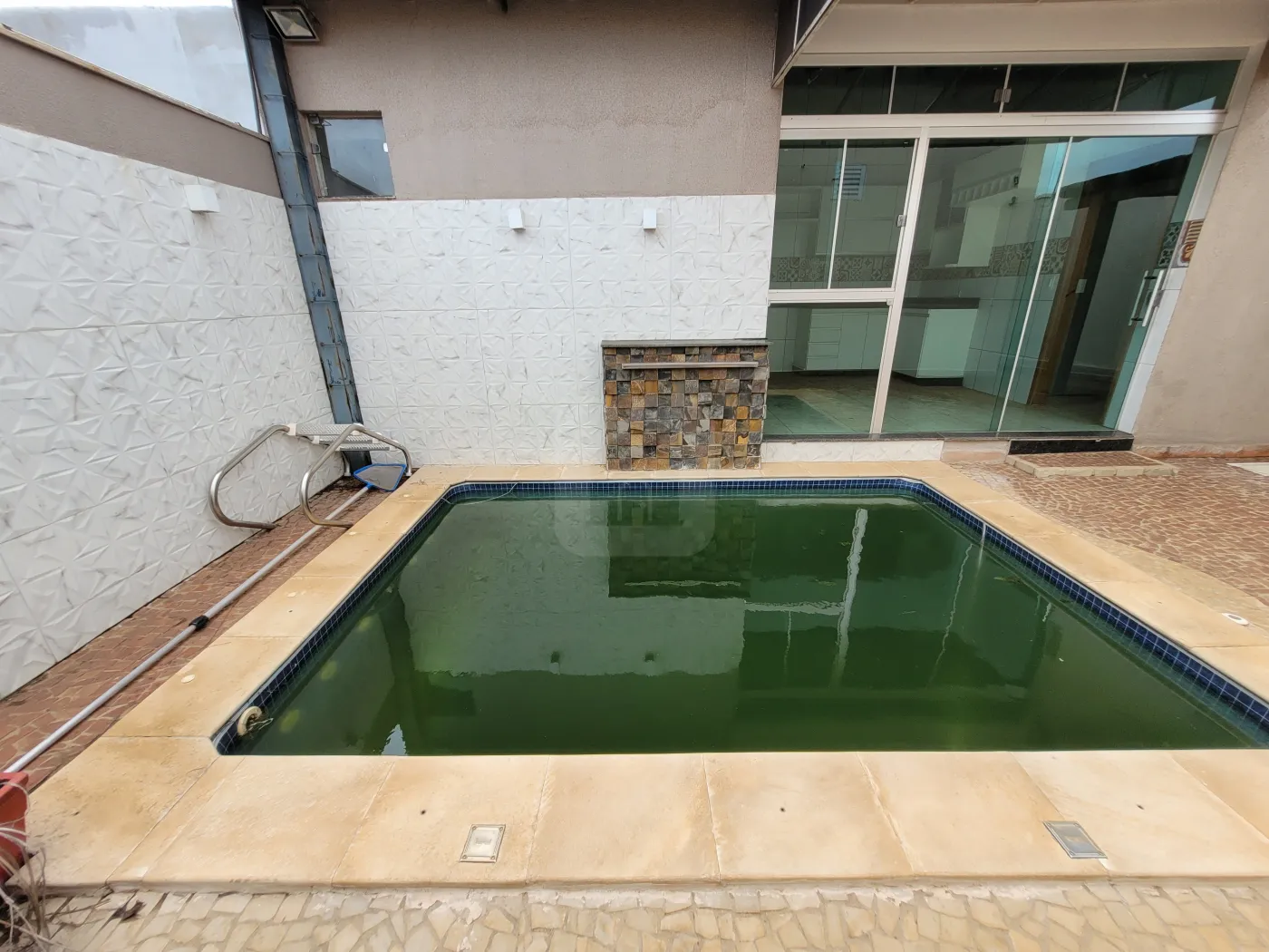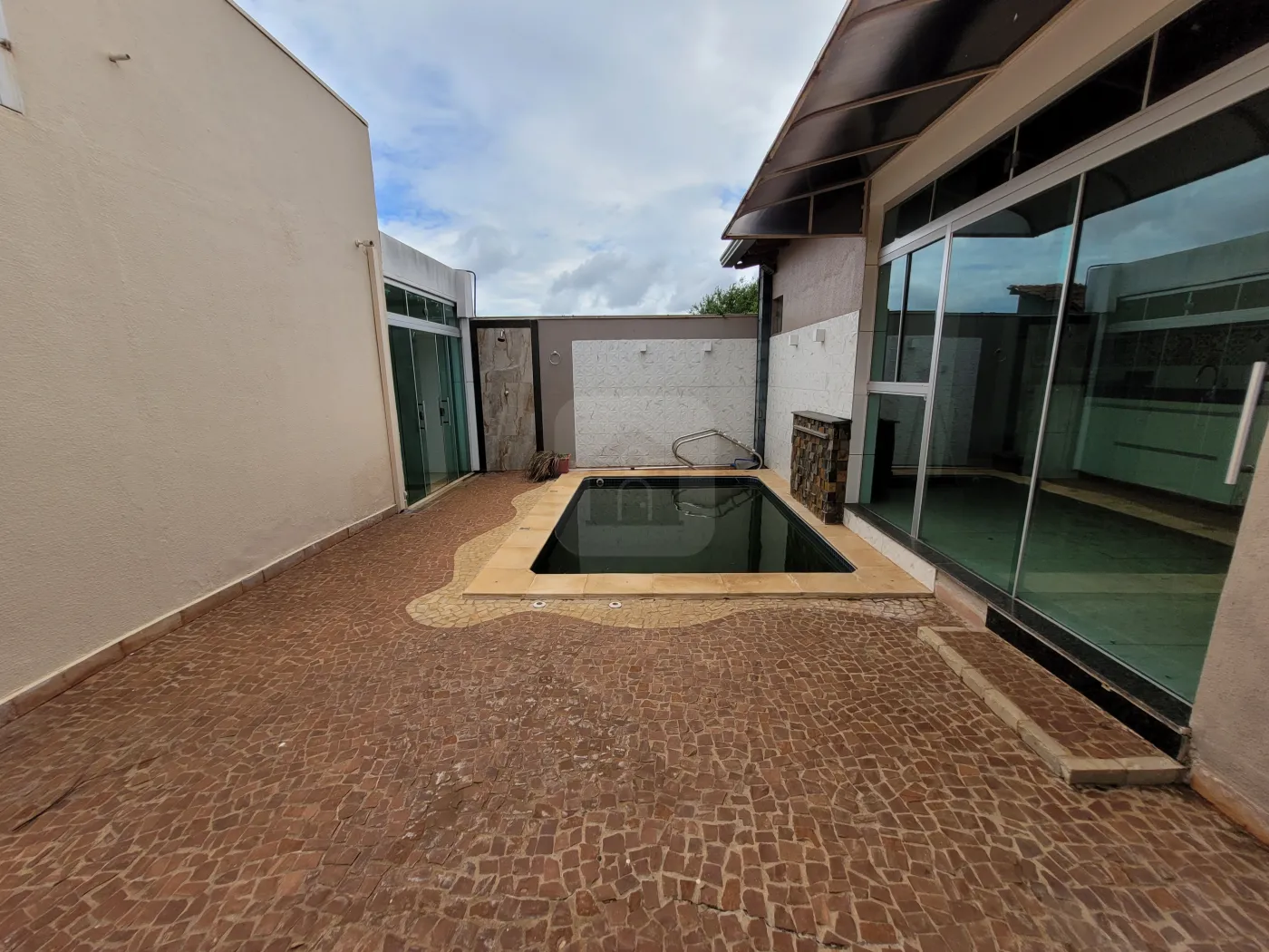 04 quartos, sendo 01 suíte, 03 banheiros, 02 cozinhas, Lavanderia, Piscina com cascata e hidro automatizada, Pergolado, Cômodos com móveis planejado.