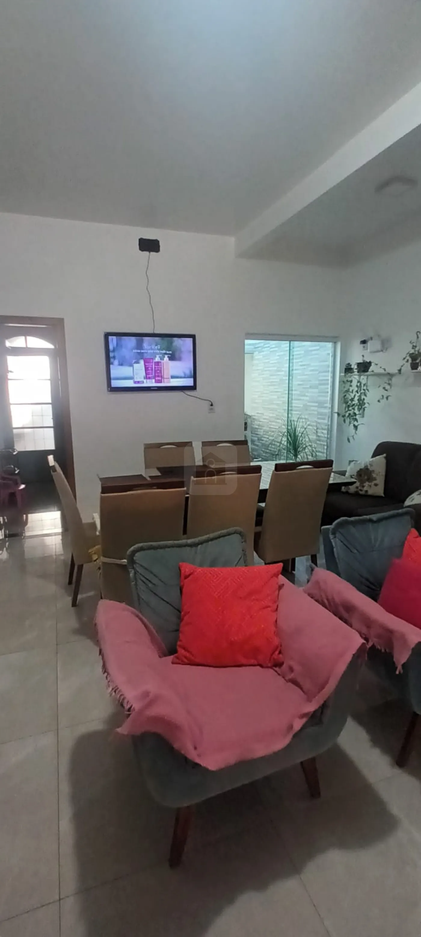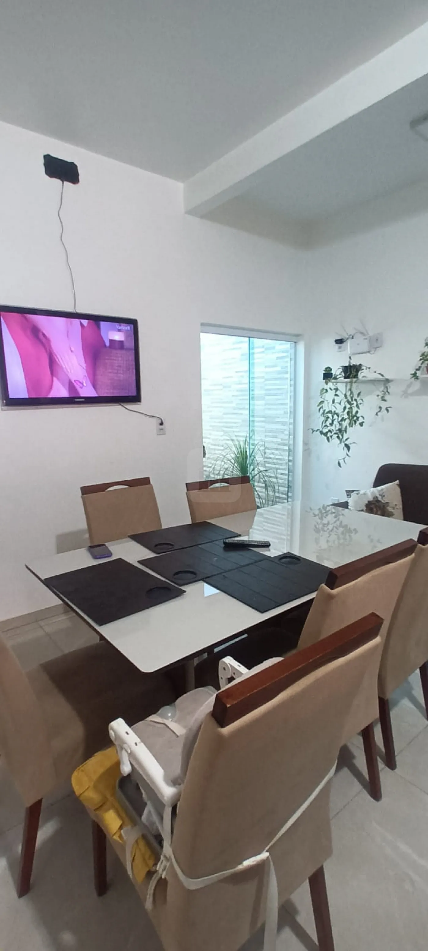 Sala em 02 ambientes, jardim de inverno, cozinha armários, 03 quartos sendo 01 suíte ar, banheiro social, área de serviço coberta, varanda ampla, quarto despejo, churrasqueira, quintal cimentado, garagem 02 carros.