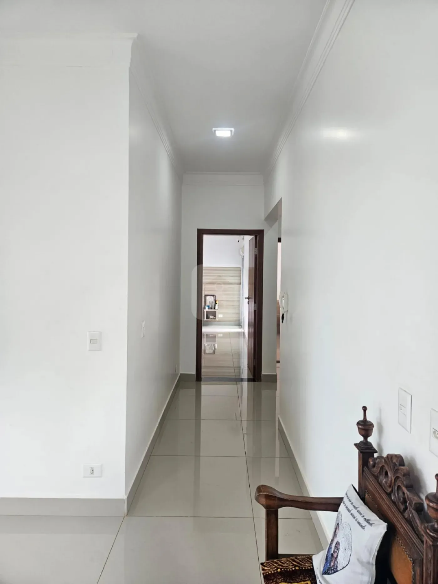 A área íntima, com piso vinílico madeirado e portas e rodapés cor fendi, resultaram em bastante aconchego.