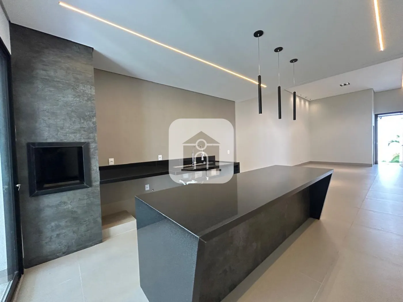 Na área interna, oferece 03 suítes amplas, lavabo e escritório. A sala possui pé-direito duplo, garantindo maior amplitude e excelente iluminação natural. A cozinha gourmet com churrasqueira integrada é um dos destaques, com ilha central de 03 metros, ideal para receber e integrar ambientes.