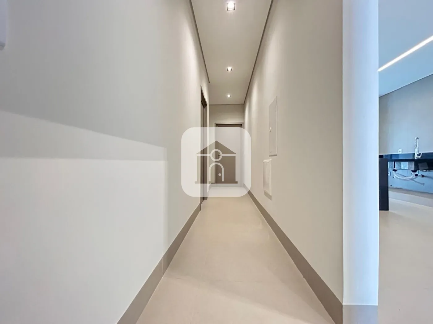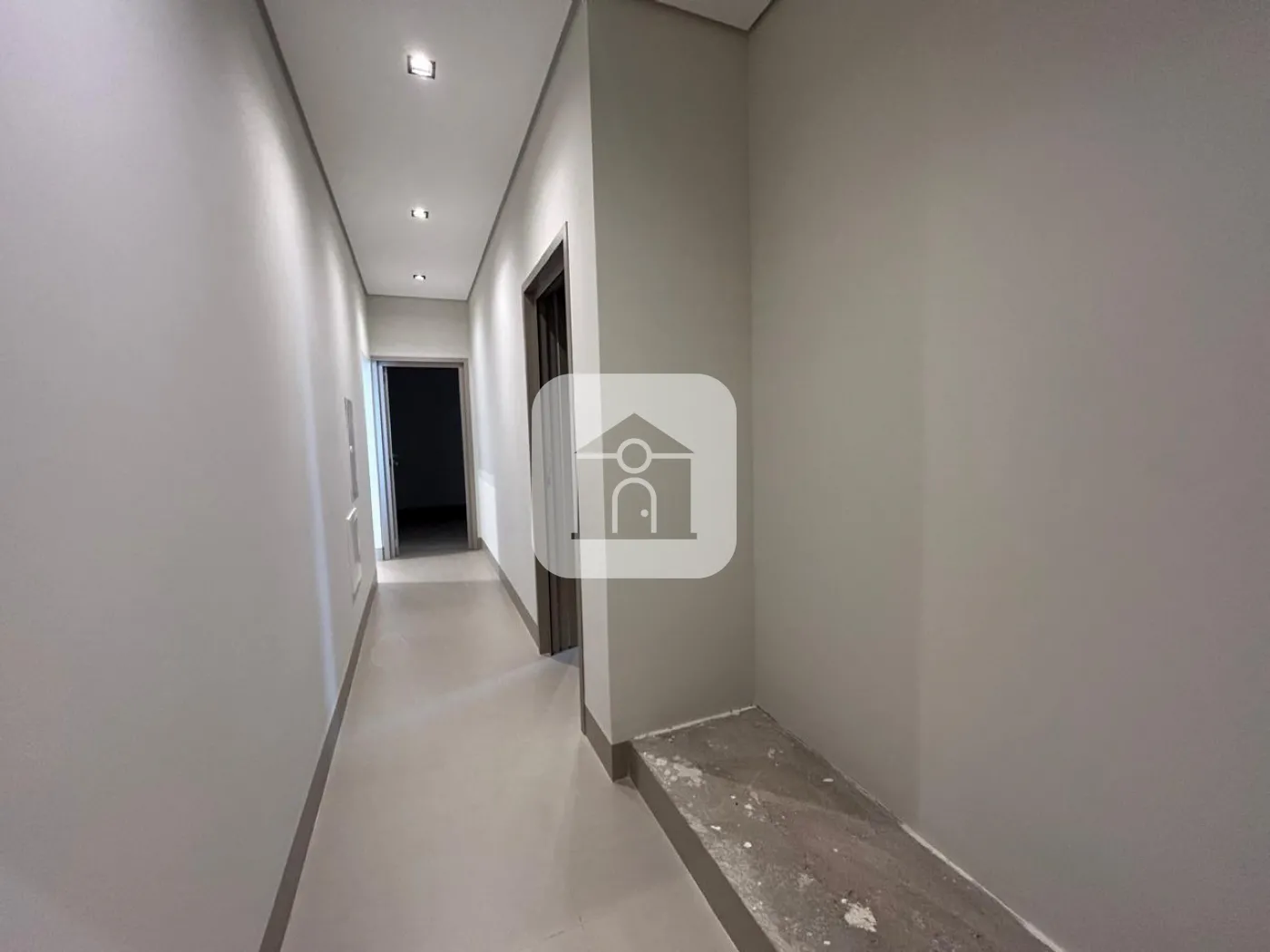 O imóvel conta com revestimento em porcelanato Cemento Grigio Biancogres 90x90, portas em ACM em todos os ambientes, incluindo quartos e banheiros, esquadrias em alumínio e uma imponente fachada com pele de vidro. A calçada em pedra macaquinho complementa o visual externo com charme e durabilidade.