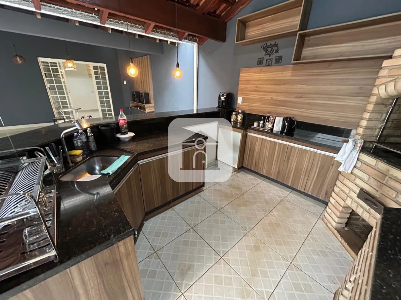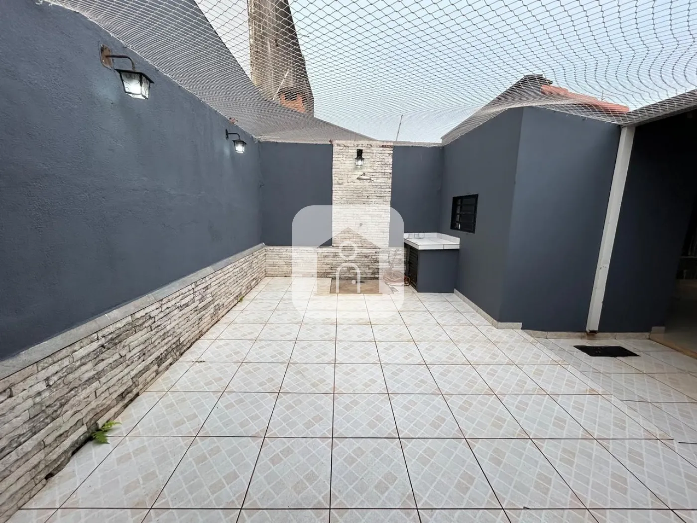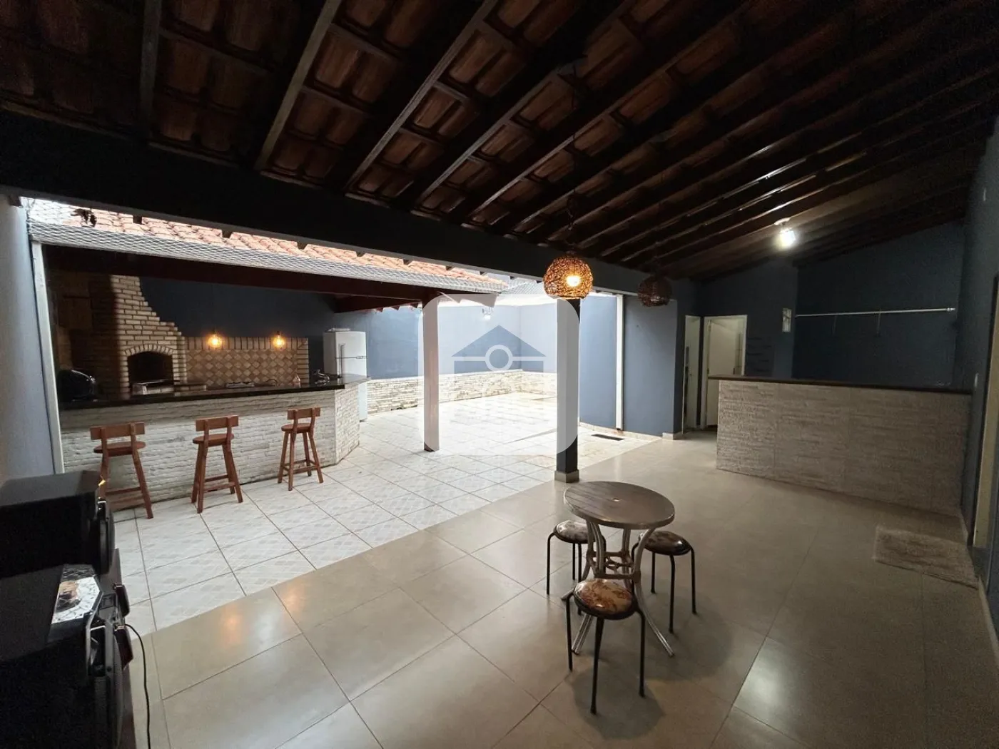 1º piso: Sala de Estar, sala de tv com Painel de TV e ar condicionado, 1 quarto com armários, banheiro social, cozinha panejada conjugada com a copa, varanda ampla, área de serviço com armários, 1 banheiro externo, despensa, varanda gourmet com churrasqueira e armários, fogão a lenha. Quintal coberto com tela de proteção.