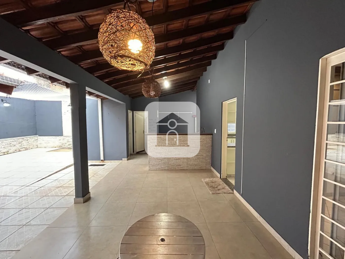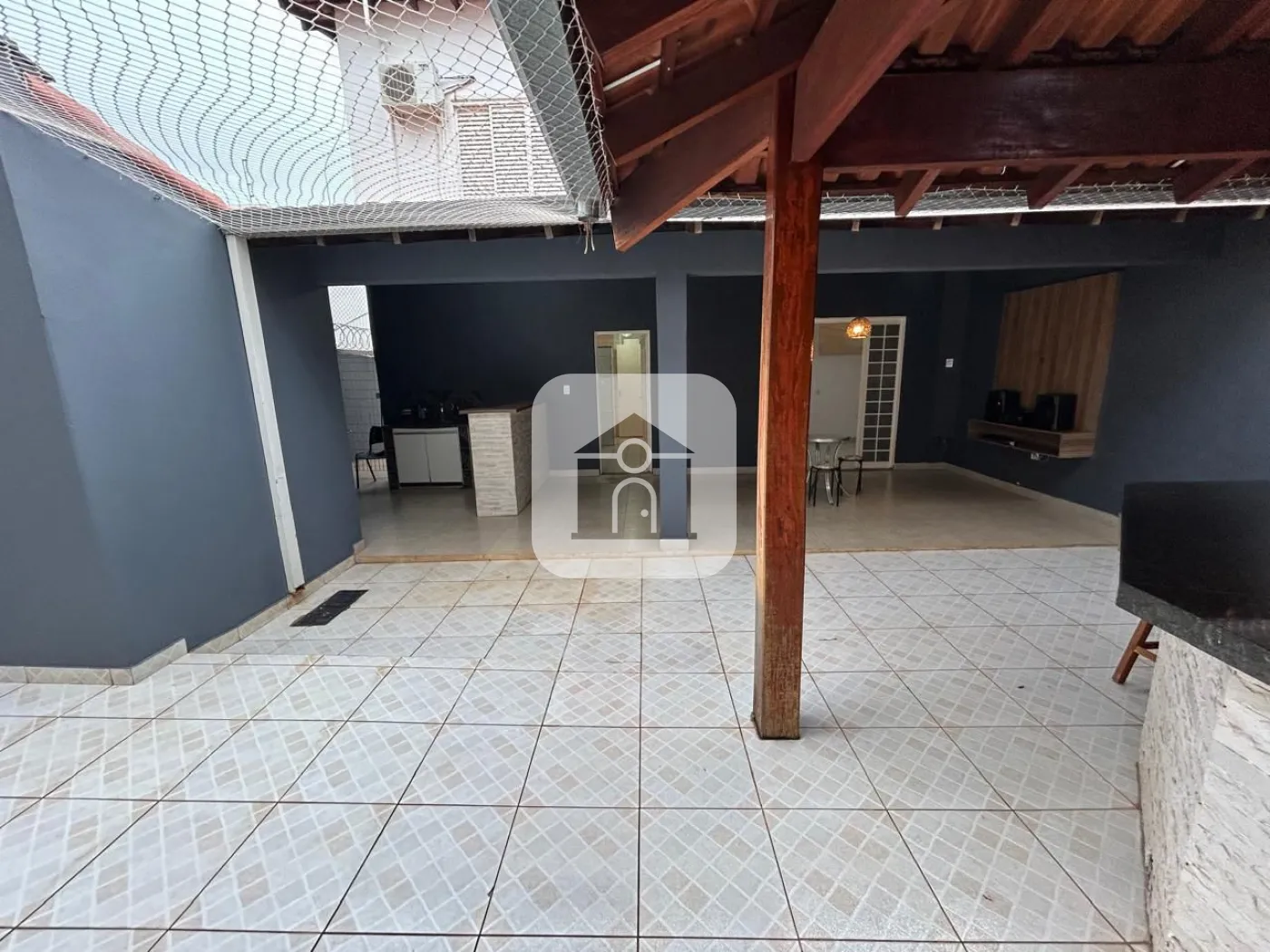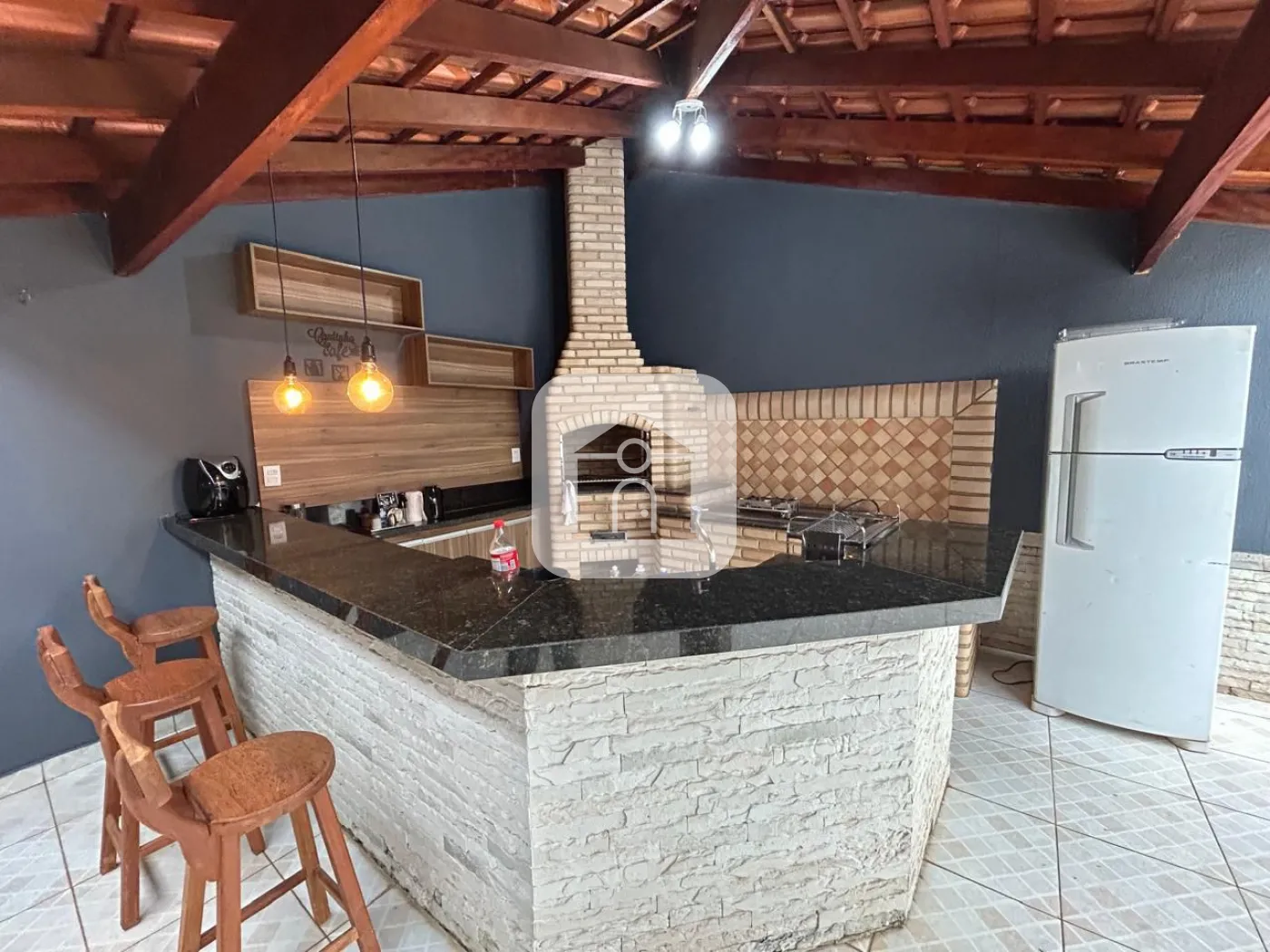 1º piso: Sala de Estar, sala de tv com Painel de TV e ar condicionado, 1 quarto com armários, banheiro social, cozinha panejada conjugada com a copa, varanda ampla, área de serviço com armários, 1 banheiro externo, despensa, varanda gourmet com churrasqueira e armários, fogão a lenha. Quintal coberto com tela de proteção.