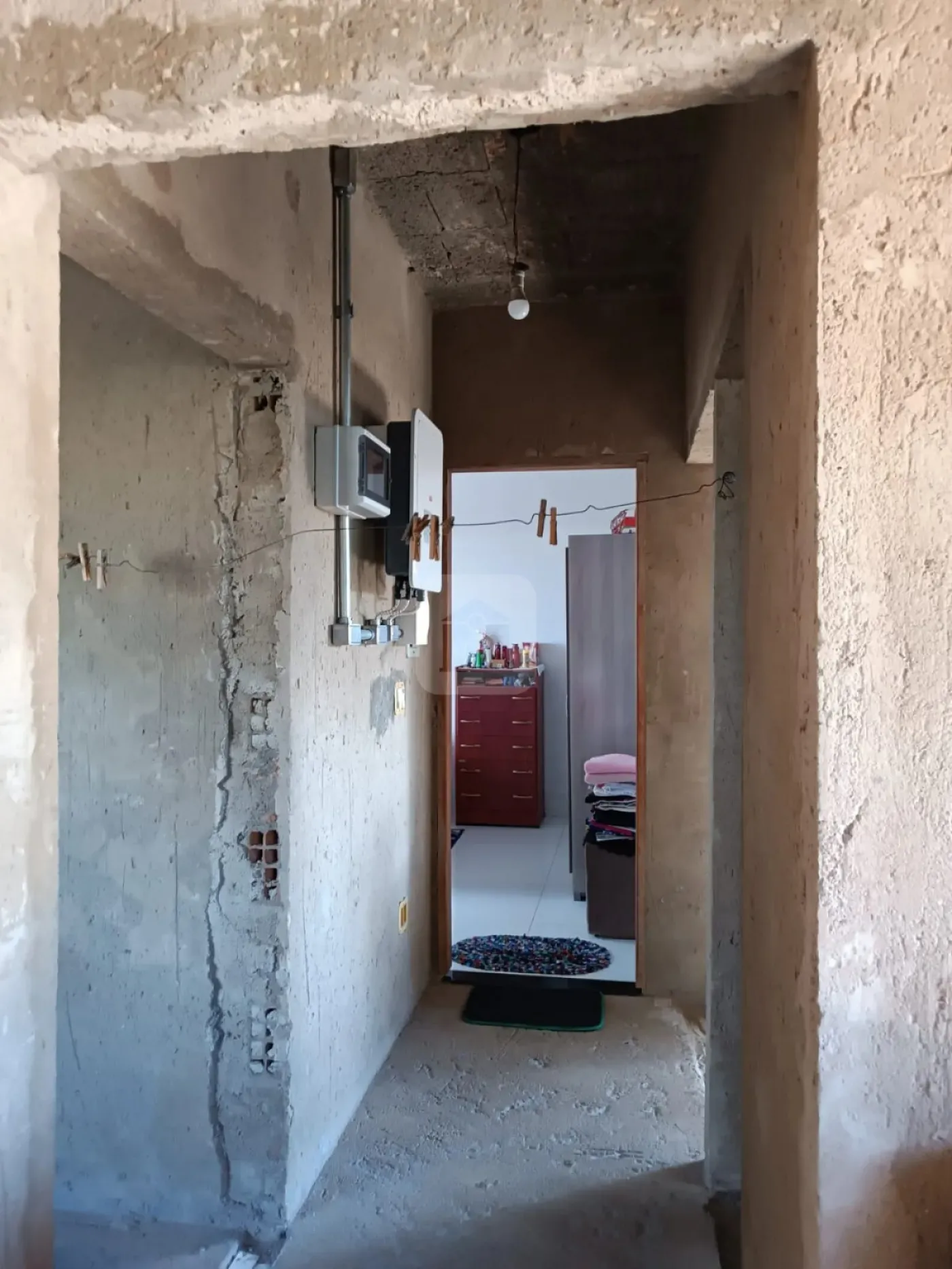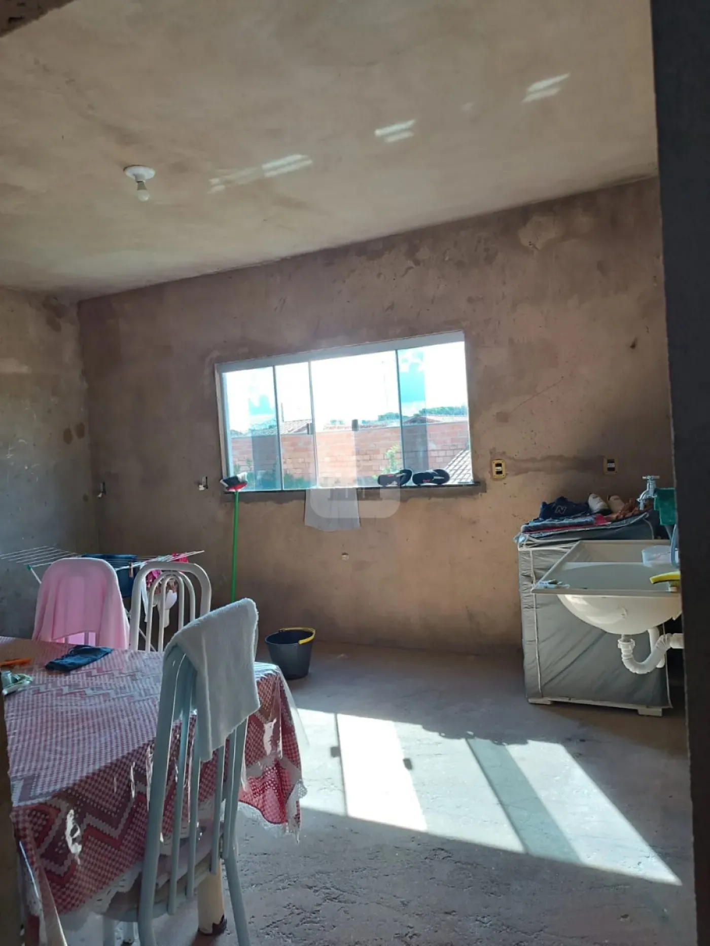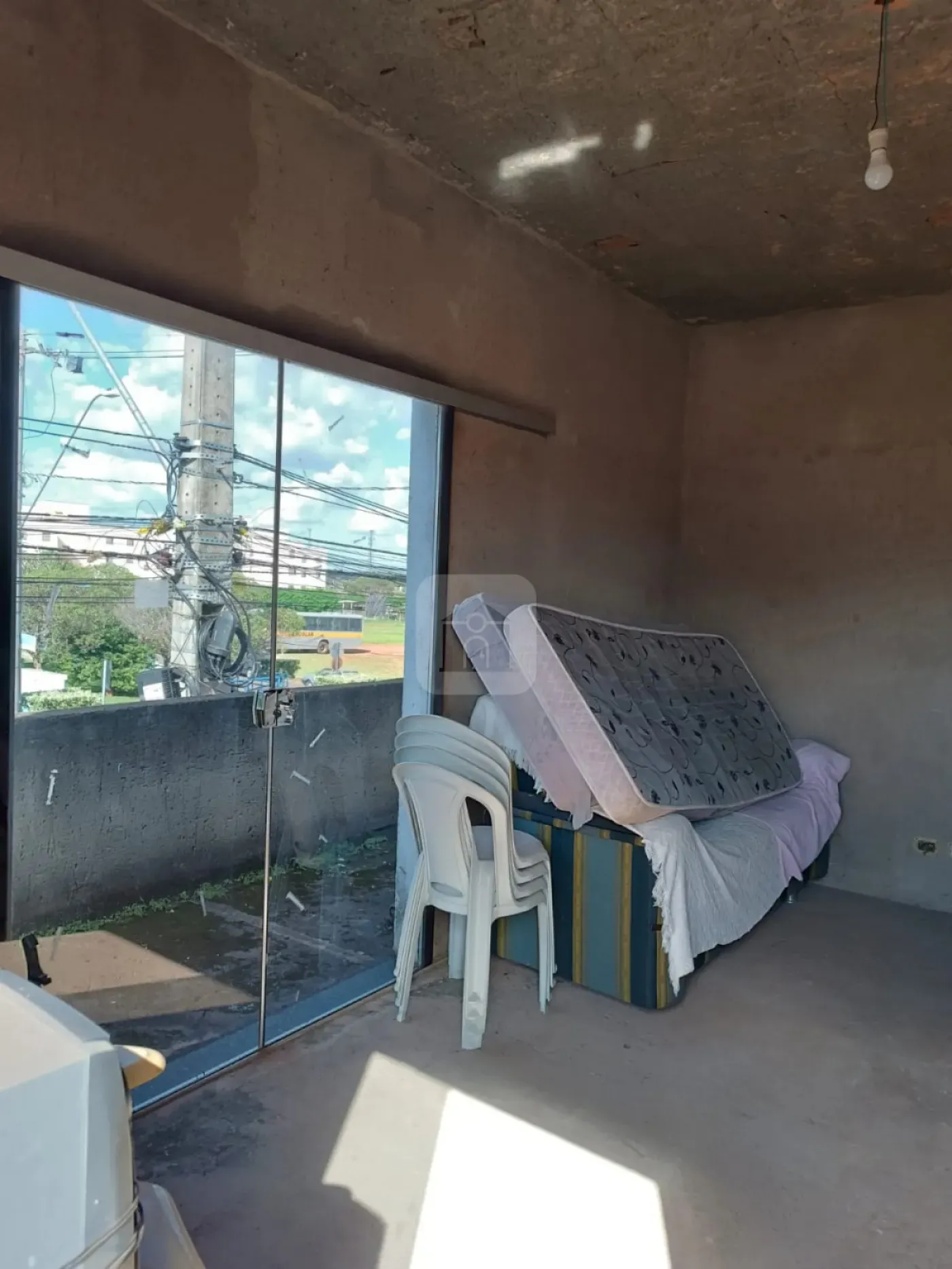 2 - O apartamento fica acima do cômodo comercial, está inacabado (estando pronto somente uma suíte) entrada por escada de madeira descoberta. Ele tem dois quartos (sendo uma suíte - já finalizada), uma sala com uma porta de vidro temperado para a sacada, banheiro e cozinha (não tem pia, somente um tanque), garagem descoberta, todas as janelas são de vidro temperado com alumínio, a sala e os quartos são rodeadas por uma ampla sacada.