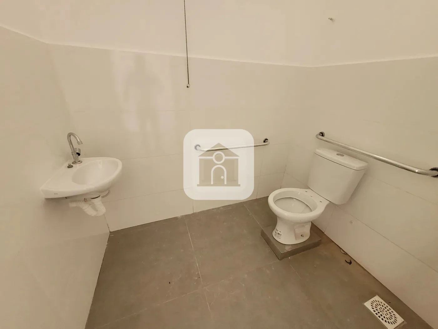 Frente recuada, acessibilidade, 02 vagas de estacionamento, pé direito com 4,5m, banheiro acessível, copa, piso porcelanato, aprox. 45m².