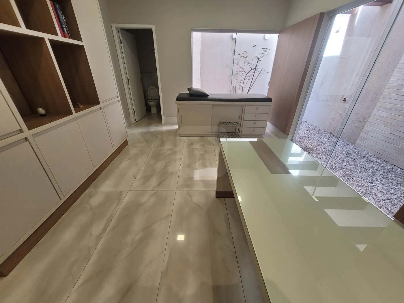 Excelente imóvel comercial com recepção, jardim de inverno, área de serviço, banheiro, copa, 03 salas com banheiro, estacionamento frontal 02 carros, plataforma elevada. Sistema de segurança por senha, câmeras, infra-vermelho, alarme, cerca elétrica e concertina. Espaço decorado com fino acabamento, de frente para praça arborizada.