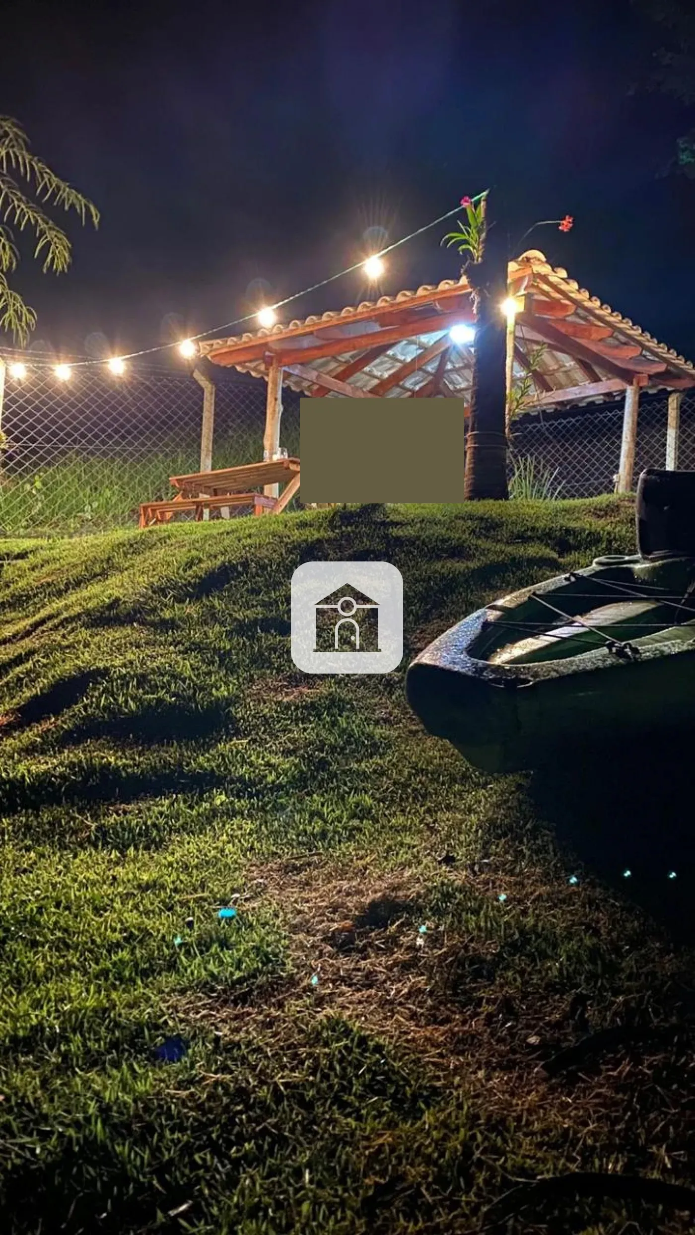 Na lateral um acesso todo com cimento até água, para embarque e desembarque de lancha.