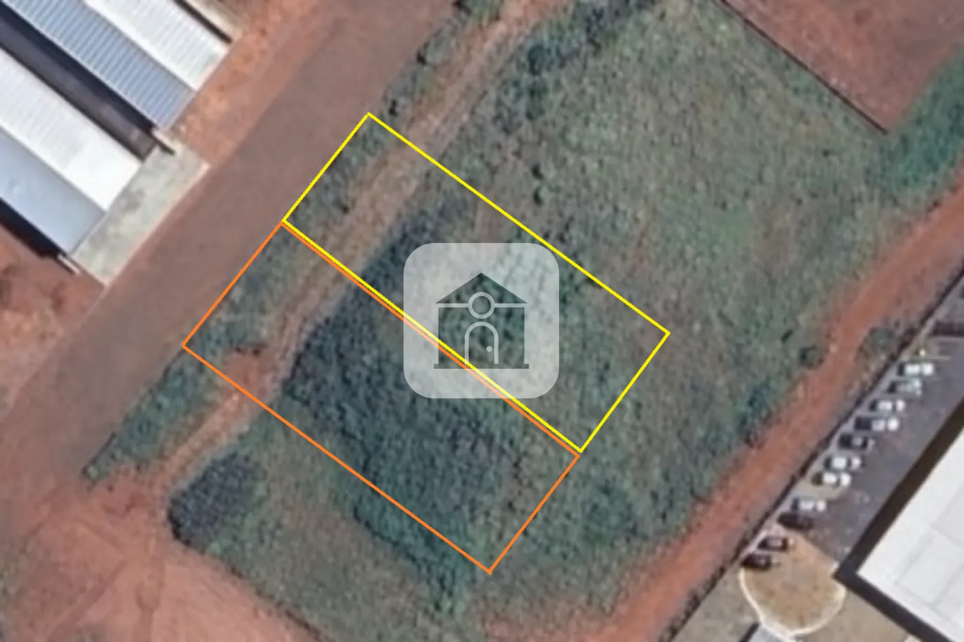 Na última imagem do anúncio, o lote de 1.000 m² está destacado na cor laranja. A soma das áreas em laranja e amarelo corresponde aos 2.000 m² disponíveis para venda.